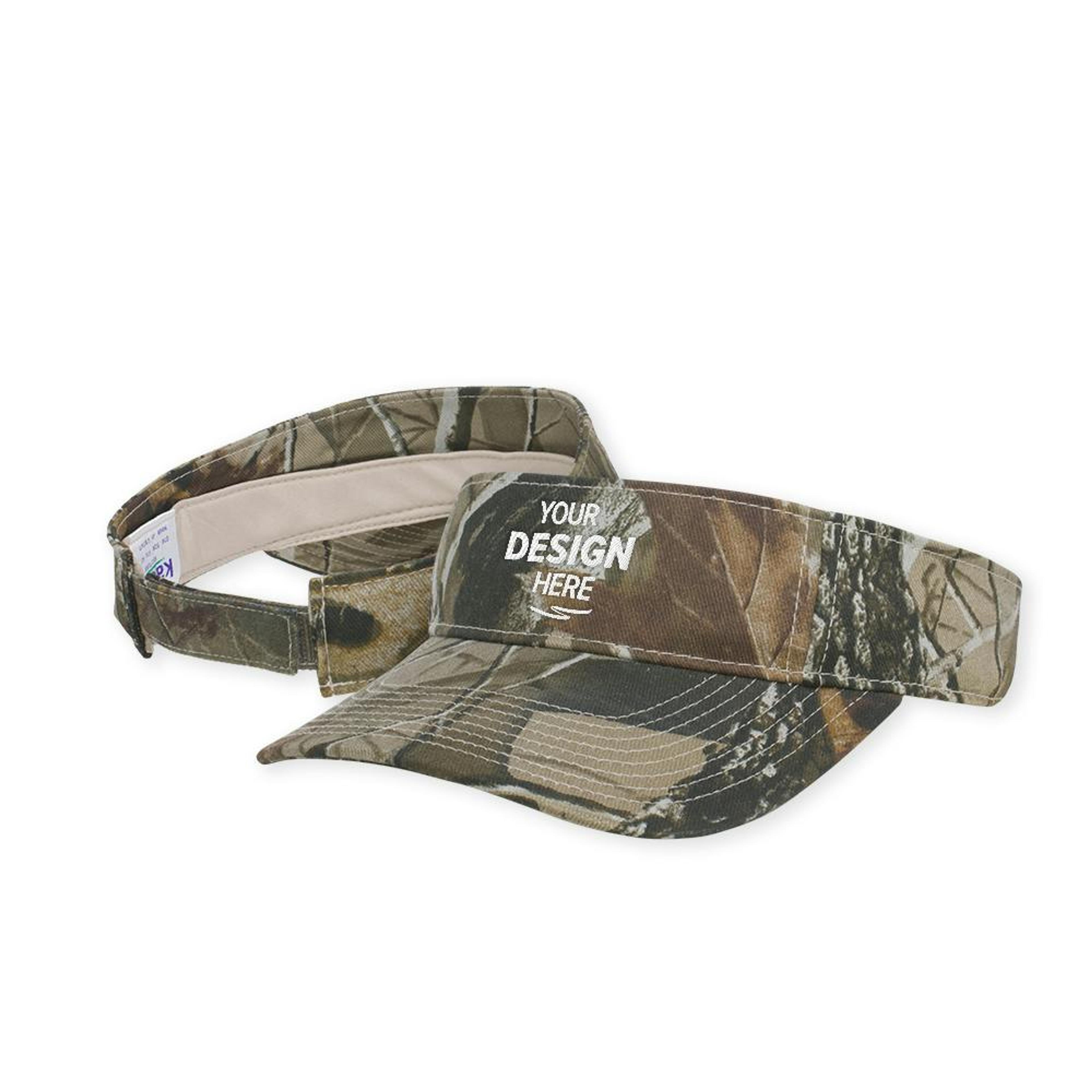 Introducing the Kati Licensed Camo Visor, crafted from a blend of brushed cotton and polyester twill. The pre-curved visor provides a classic look and optimal shading. It's designed with a convenient hook-and-loop closure for an adjustable and secure fit. Show your love for camo in style with this licensed visor from Kati. Customize with your artwork or a logo!