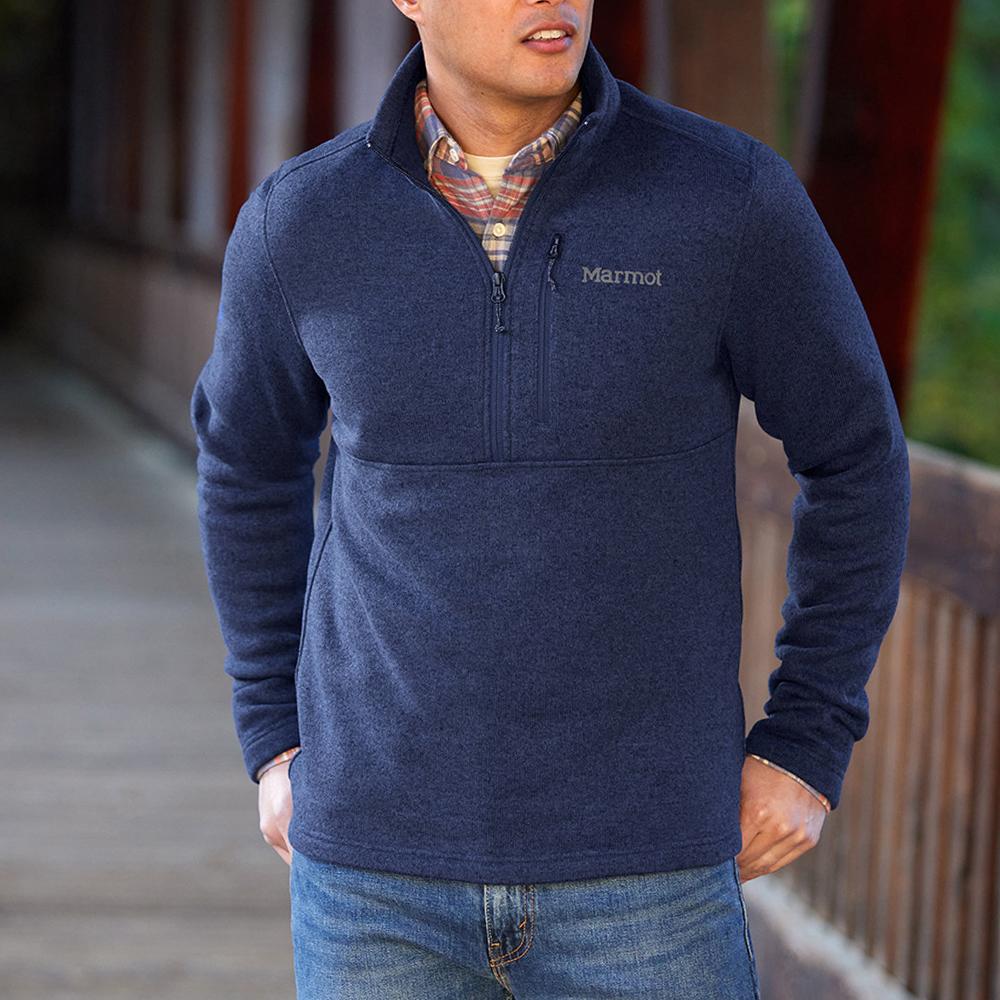 The Marmot Dropline Half-Zip Jacket is designed with warm and lightweight Repreve Recycled 100-weight polyester fleece, offering eco-conscious comfort and insulation. This half-zip pullover style ensures easy layering, while the elastic-bound cuffs and hem provide a secure fit that locks in warmth. Perfect for outdoor activities or casual wear, this versatile fleece jacket balances functionality and sustainability. Create your very own by simply adding your design or logo!