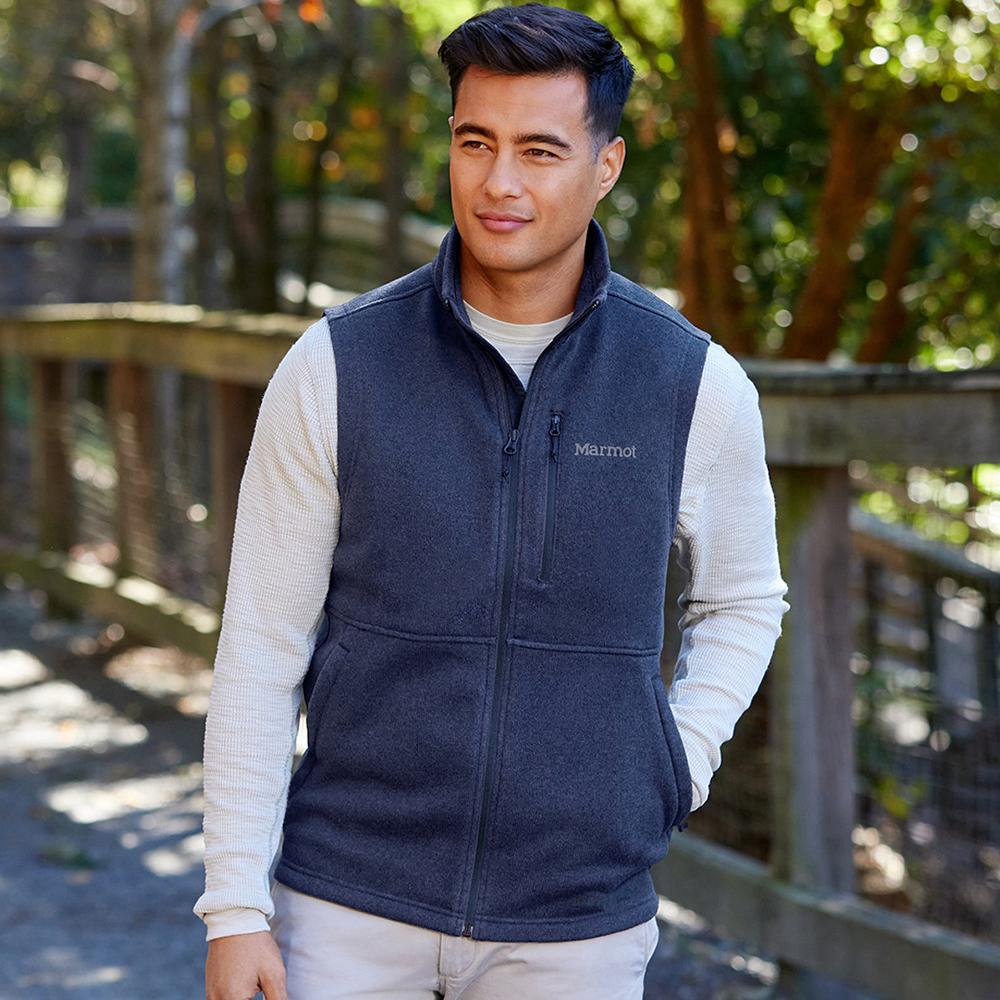 The Marmot Dropline Vest is designed with cozy 100 Wt sweater fleece, ensuring warmth and comfort during outdoor adventures. Its flatlock seam construction offers chafe-free wear, perfect for all-day use. The zippered chest pocket provides secure storage for essentials, making this vest a functional and stylish choice for layering in cooler weather. Create your very own by simply adding your design or logo!