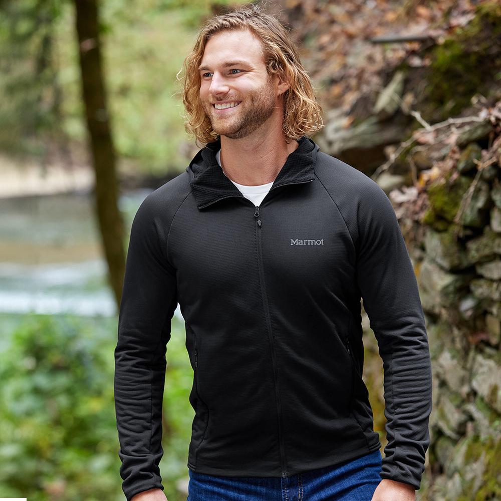 The Marmot Leconte Full-Zip Hooded Jacket features a blend of recycled polyester and elastane drop needle, designed to keep you comfortable with its technical grid fleece that efficiently wicks moisture away from your body. Offering enhanced stretch for mobility and comfort, this jacket is ideal for active pursuits. Zippered hand pockets provide secure storage for your essentials, making it both functional and eco-friendly. Perfect for outdoor adventures or casual layering. Simply add your design or artwork and create your very own!