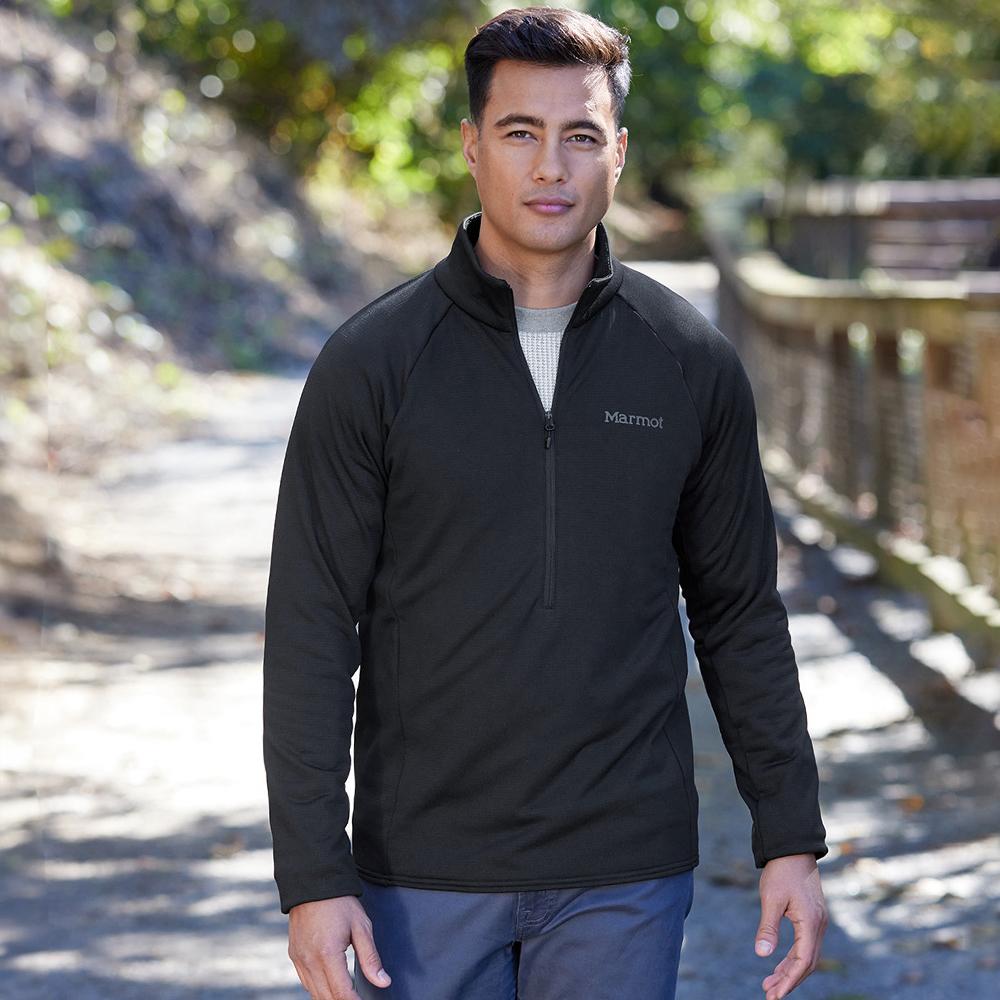 The Marmot Leconte Half-Zip is crafted from a blend of recycled polyester and elastane drop needle, offering technical grid fleece that efficiently wicks moisture away to keep you comfortable during active pursuits. Designed for stretch comfort and mobility, this half-zip pullover style is perfect for layering or as a standalone piece. Ideal for outdoor adventures, this eco-friendly top provides both performance and comfort in one sleek package. Simply add your design or artwork and create your very own!