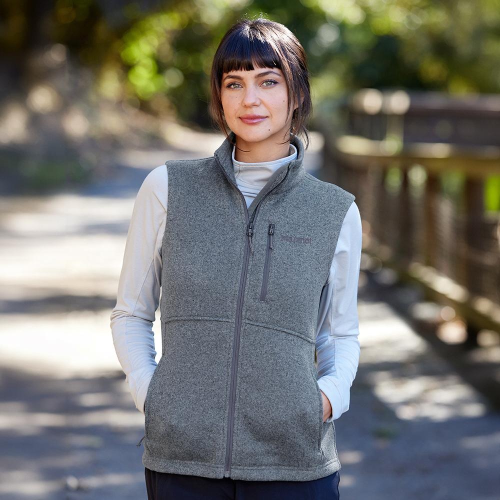The Marmot Women's Dropline Vest is designed with cozy 100 Wt sweater fleece, ensuring warmth and comfort during outdoor adventures. Its flatlock seam construction offers chafe-free wear, perfect for all-day use. The zippered chest pocket provides secure storage for essentials, making this vest a functional and stylish choice for layering in cooler weather. Create your very own by simply adding your design or logo!