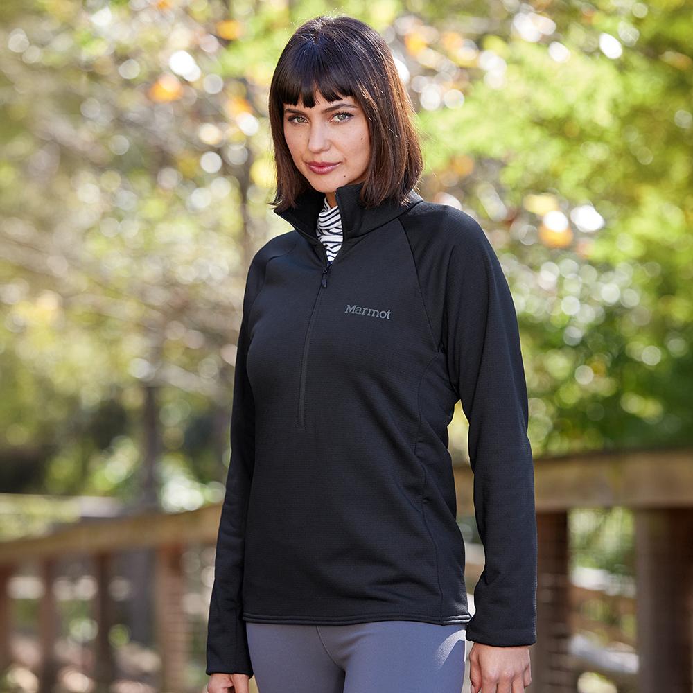 The Marmot Women's Leconte Half-Zip is crafted from a blend of recycled polyester and elastane drop needle, offering technical grid fleece that efficiently wicks moisture away to keep you comfortable during active pursuits. Designed for stretch comfort and mobility, this half-zip pullover style is perfect for layering or as a standalone piece. Ideal for outdoor adventures, this eco-friendly top provides both performance and comfort in one sleek package. Simply add your design or artwork and create your very own!