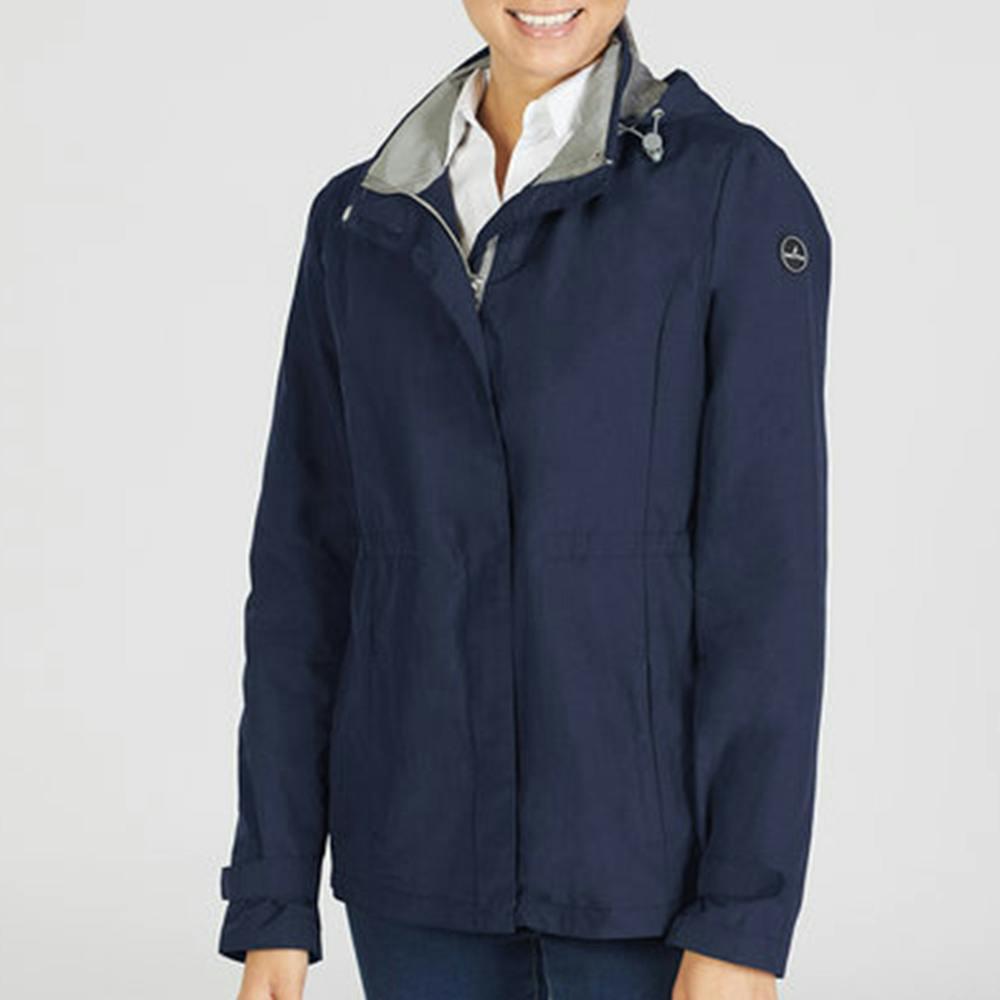 Crafted with 100% nylon weather-resistant fabric, this Nautica Women's Voyage Raincoat provides reliable protection against the elements. It features a packable mesh-lined hood with an adjustable toggle, a storm flap with a branded Nautica zipper, and secure welt hand pockets for added convenience. The branded rubber Nautica patch on the left sleeve and back locker loop with Nautica branding add a touch of style. Add a design or logo dry and stay dry in the Nautica Women's Voyage Raincoat.
