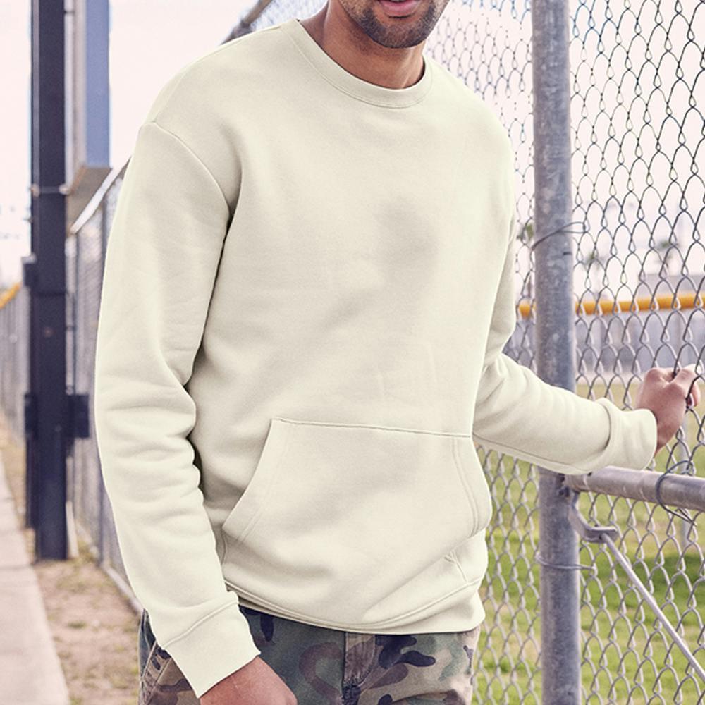 Experience supreme comfort with the New Era Heritage Fleece Pocket Crew. Crafted from combed cotton and polyester, this crewneck boasts one of the softest, loftiest fleeces you've ever felt. Embrace a relaxed look that effortlessly channels a vintage 90s vibe, featuring slight drop shoulders and soft colors. The debossed New Era neck tape, front pouch pocket, rib knit cuffs and hem, and embroidered New Era flag at the left sleeve add subtle yet distinctive details. Elevate your style with this fleece pocket crew that blends superior comfort with timeless design. Create your very own by adding artwork or a design!