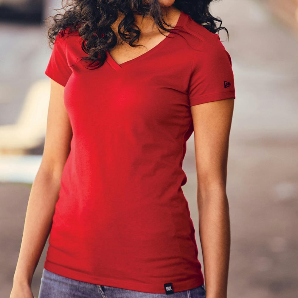 The New Era Ladies Heritage Blend V-Neck Tee combines lightweight comfort and polished style—perfect for everyday wear, team uniforms, or branded giveaways. Made from a 4.4 oz. 60/40 ring‑spun cotton/poly blend, it’s soft, breathable and holds its shape; the crossover V-neck flatters while heat‑transfer labels and reverse neck/shoulder taping deliver tag‑free comfort and lasting durability. Subtle New Era branding on the sleeve and hem gives a premium finish that’s great for retail or promotional use. Please note: this product ships within the United States only.