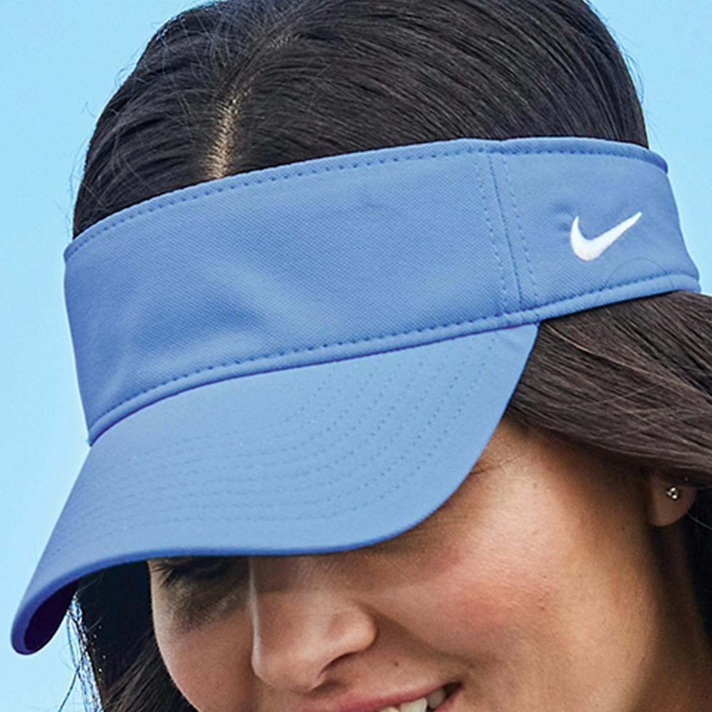 With iconic style that performs, this Nike Dri-FIT Team Visor is just what a team needs. This lightweight, three-panel visor features a pre-curved bill and an interior Dri-FIT performance sweatband to keep you comfortable. The velcro closure allows for an adjustable fit for all, and the contrast Swoosh logo embroidered on the left-side panel boasts premium Nike quality.
