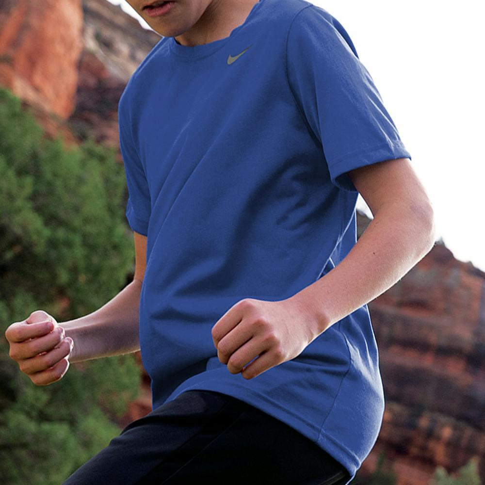Built for a variety of training conditions, this youth legend tee features Dri-FIT technology to wick away sweat and help keep you dry. The short-sleeved silhouette helps you stay cool, while the neck taping provides extra durability.
