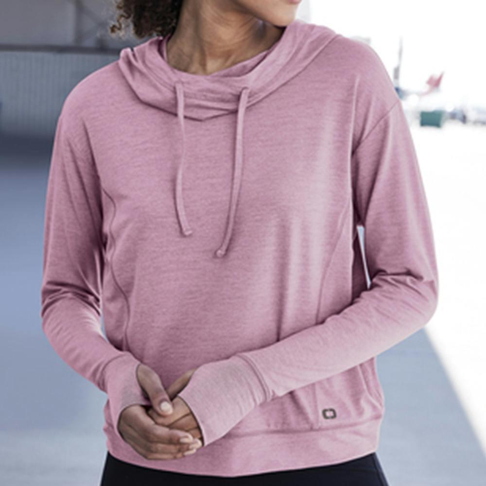 With a soft, boxier fit, this Ogio women's hoodie screams comfortable. The cowl collar on this hoodie provides a stylish look, and the stay-cool moisture-wicking technology will help keep you dry all day long. Add a design and give this hoodie a try!