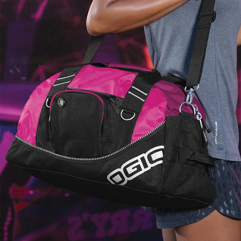 Sized to fit the gym locker, this duffel opens wide to reveal a roomy interior that holds shoes and a change of clothes. With a detachable, adjustable shoulder strap and a side grab handle, this duffel is easy to carry back and forth. Add a design and give this duffel a try!