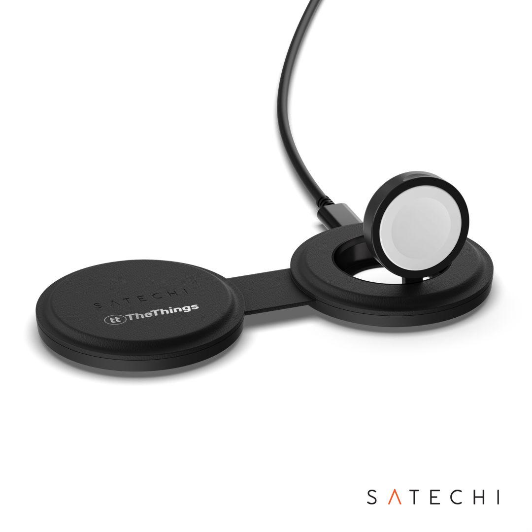 Charge smarter wherever life takes you with the Satechi OntheGo™ 2-in-1 Wireless Charger. Powered by the latest Qi2 technology, this compact charger delivers up to 15W fast wireless charging for iPhone and 5W charging for Apple Watch—all in one streamlined, foldable design. Crafted with soft, scratch-resistant premium materials and built for durability, it slips easily into a bag while keeping your space clean and organized. Perfect for travel, home offices, bedside tables, and everyday carry, this sleek 2-in-1 charger keeps your essential devices powered efficiently and effortlessly.