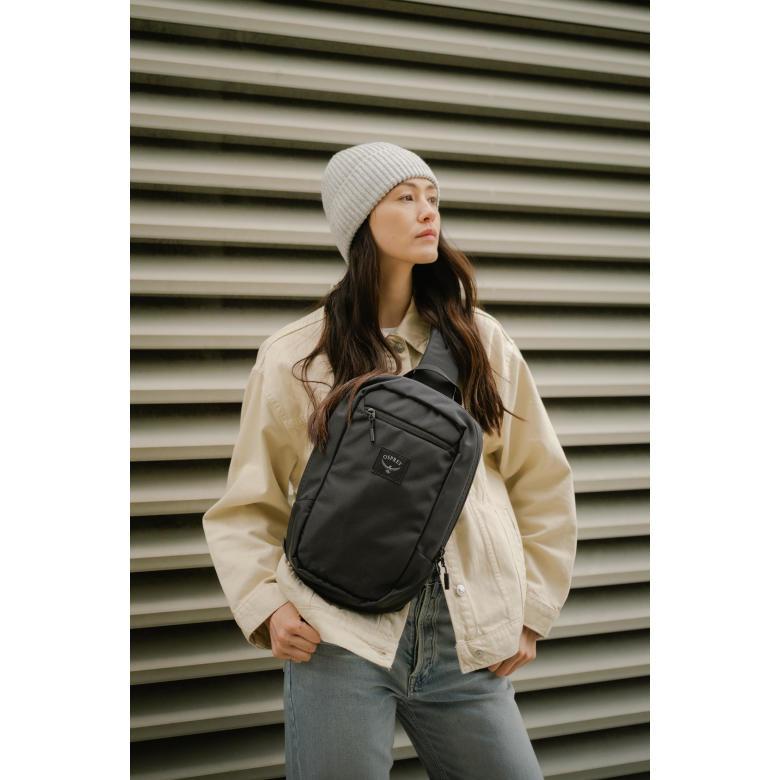 This lightweight and versatile sling bag keeps your essentials organized with a spacious main compartment and a dedicated phone pocket. A padded sleeve securely fits most devices up to 8", ensuring protection on the go. Designed for all-day comfort, the ambidextrous shoulder strap offers a customizable fit. Backed by Osprey’s All Mighty Guarantee and PVC-free, it’s a durable and eco-conscious choice for everyday carry.