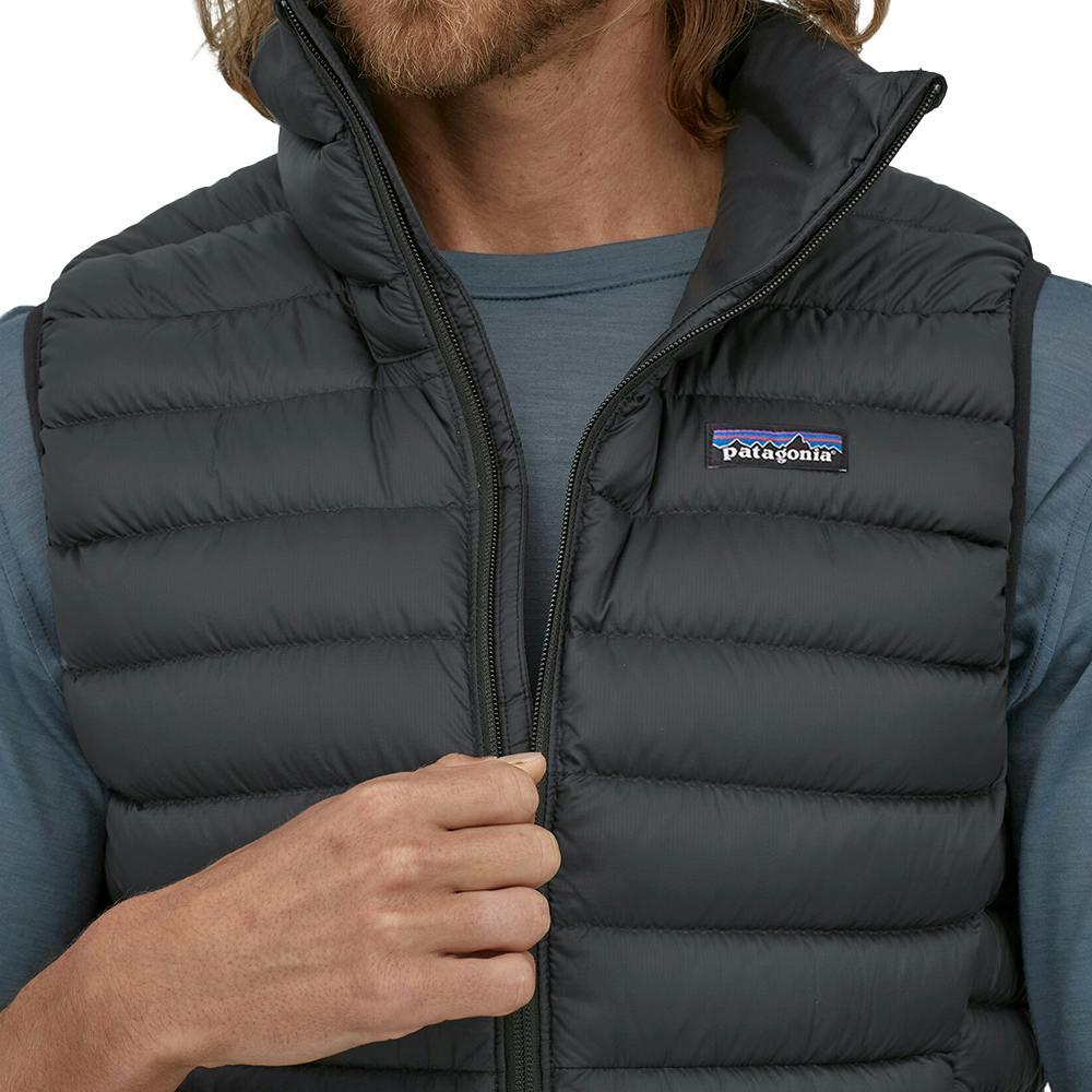 Stay cozy in brisk wind, light rain, and early-morning chill with the men's Patagonia Down Sweater vest. Its toasty-warm goose down and water-repellent finish keep you comfy in changing conditions. Lightweight and windproof with a shell made of NetPlus 100% post-consumer recycled nylon ripstop. Made from recycled fishing nets to help reduce ocean plastic pollution, and insulated with 800-fill-power 100% Responsible Down Standard down certified by Control Union (CU 880272). The purchase of Responsible Down Standard certified products demonstrates demand for better animal welfare practices in the down and feather supply chain.
