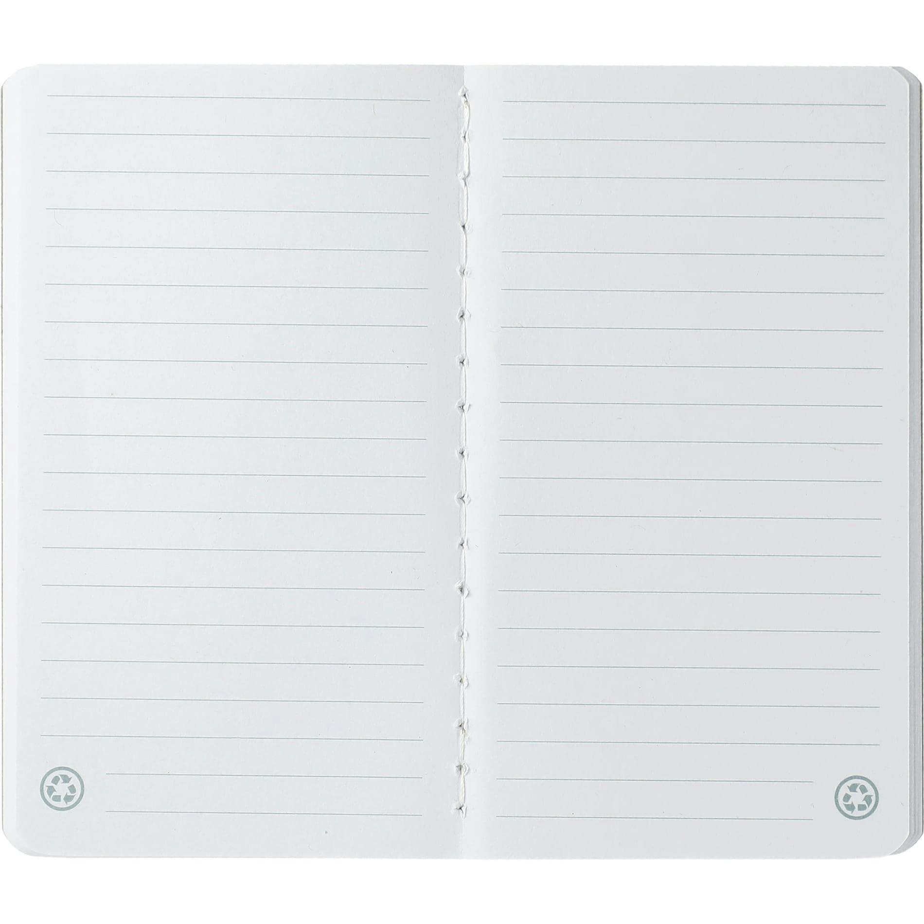 The 3" x 5" Recycled Mini Pocket Notebook features a recycled Kraft paper cover and 30 white ruled pages. Due to the nature of the material, there may be color variances.