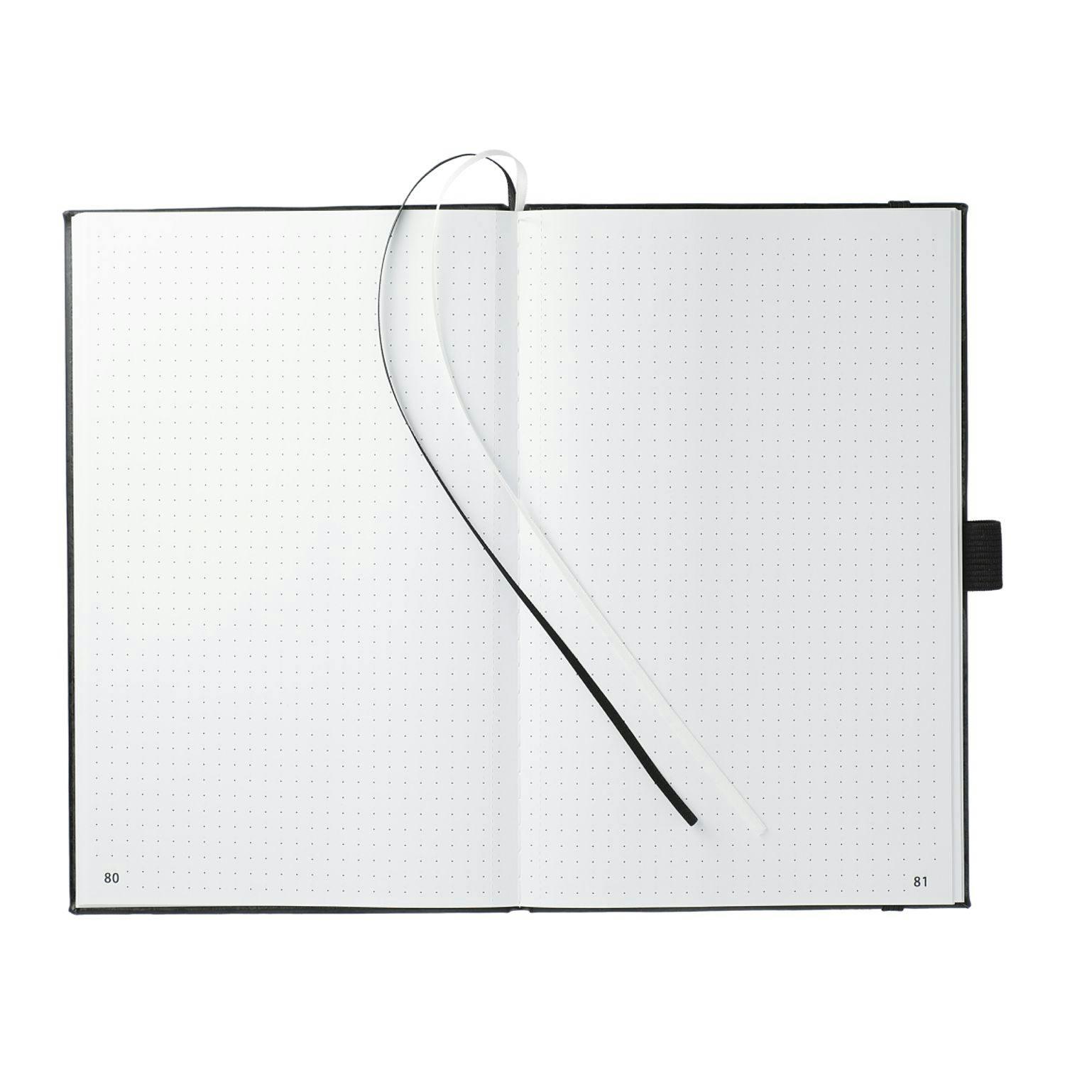 The 5.5" x 8.5" FUNCTION Bulleting Notebook is perfect for organizing your thoughts. Features a square, cornered hardbound cover with color-matching elastic closure and pen loop. Double ribbon page markers. 80 sheets of white perforated dotted and numbered pages. Pair it with your favorite gel pen.