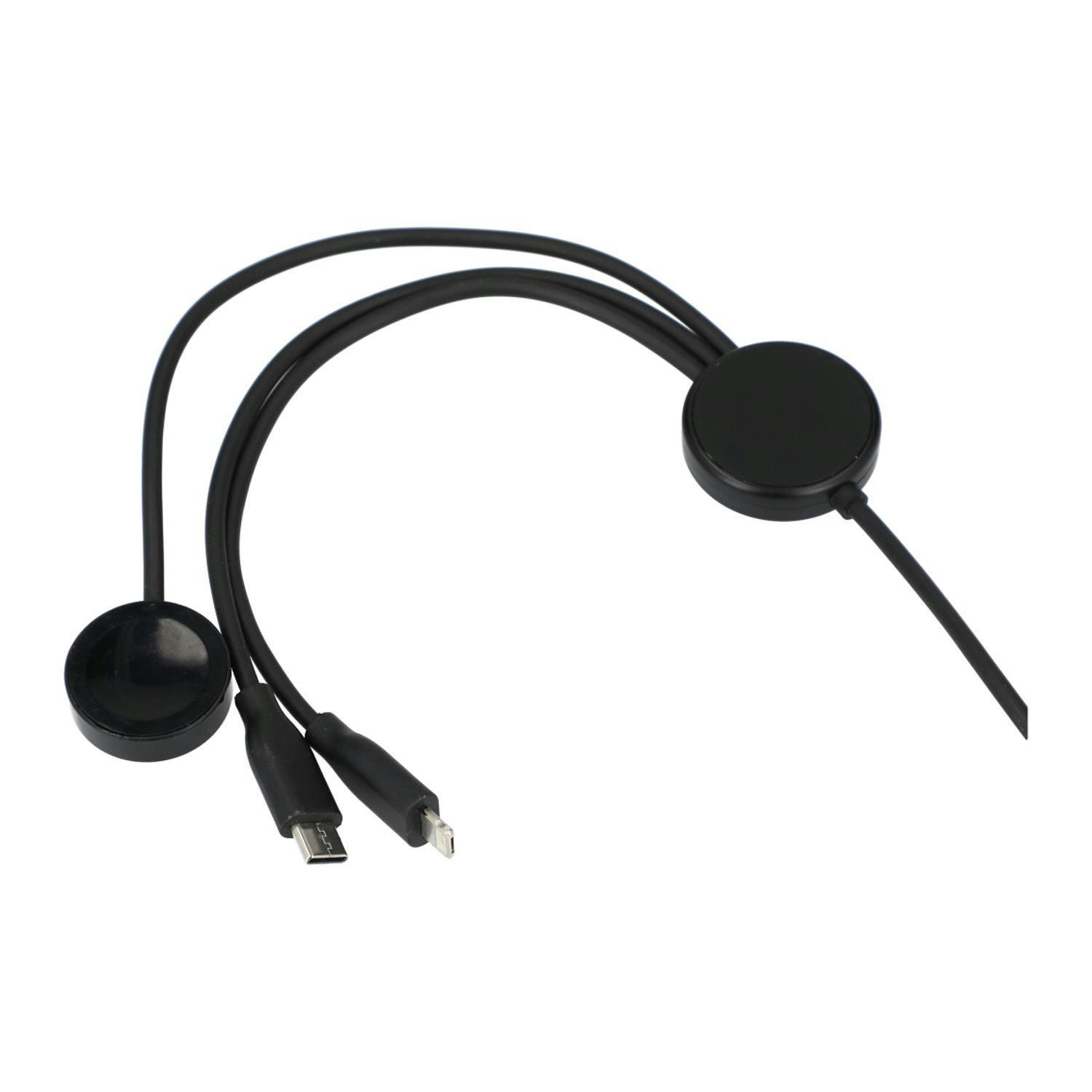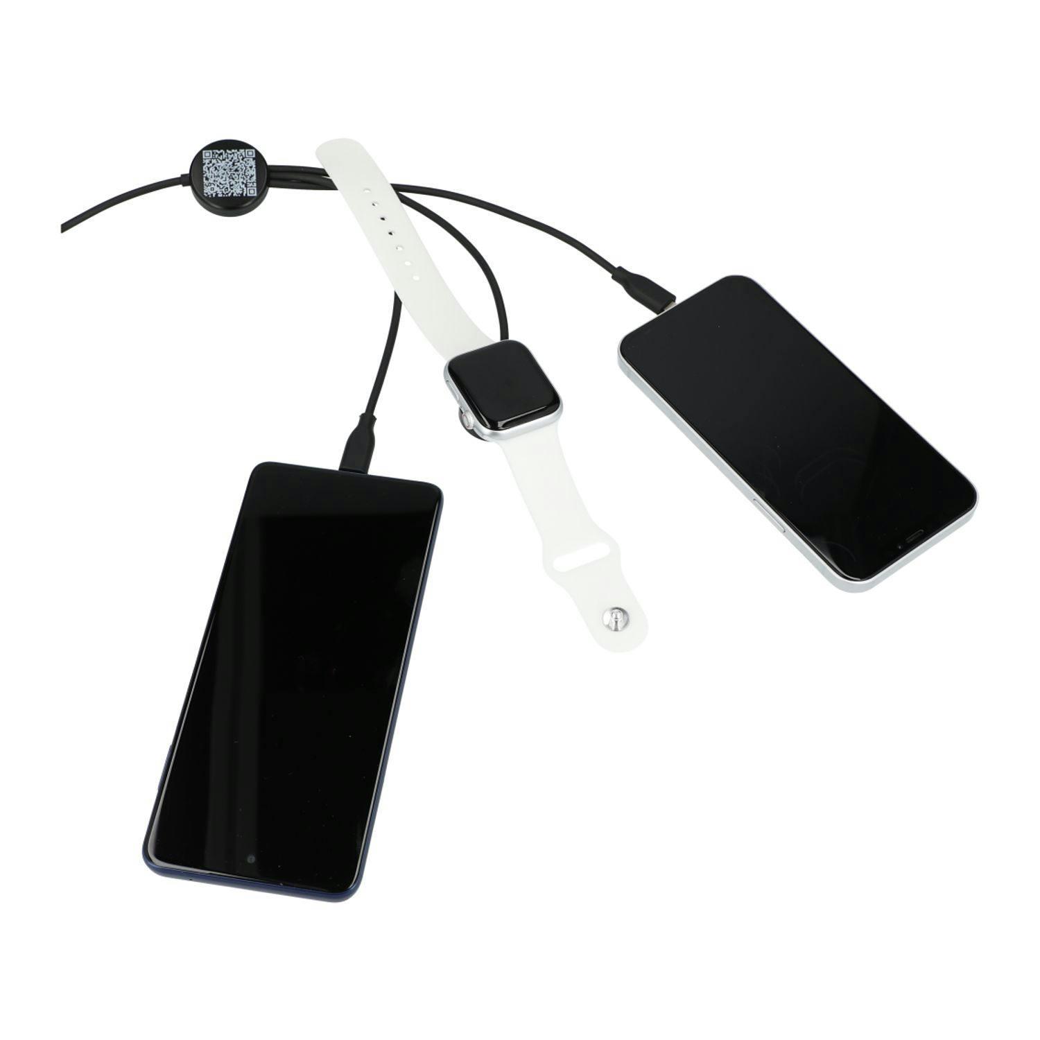 The 5-in-1 Long Charging Cables with iWatch Charger is 47" long and includes a USB Type-A adapter and a USB Type-C input tip on one side. The other side includes a two-in-one dual compatible tip for both Apple iOS and Android devices (up to 2A current), a USB Type-C output tip and a iWatch charger. It also features casing crafted from 100% recycled material. It is recommended to use an AC adapter, power bank or car charger to charge devices, instead of using outputs from laptop or computer as power source. By choosing this charging pad, you're also supporting environmental nonprofits through our partnership with 1% For The Planet.