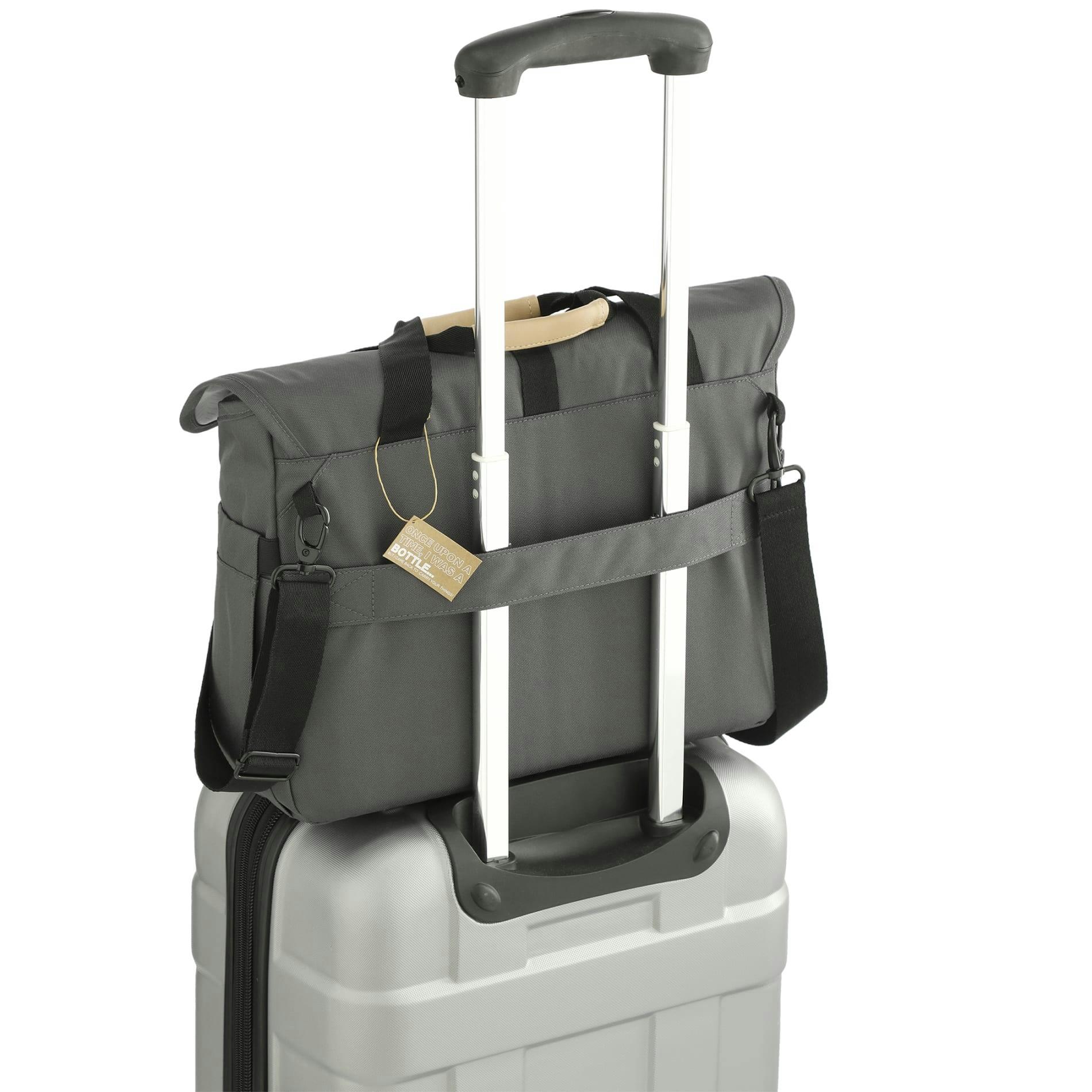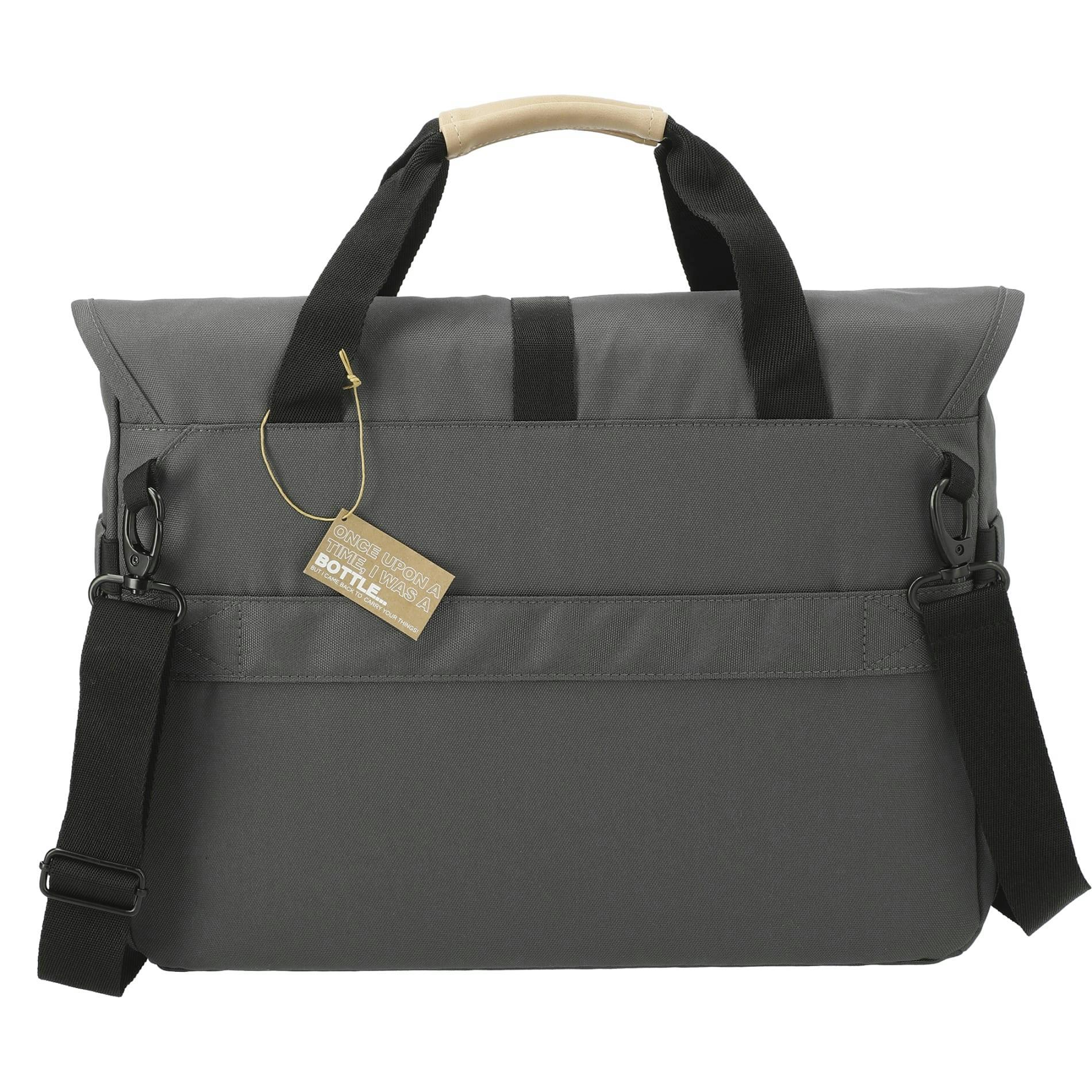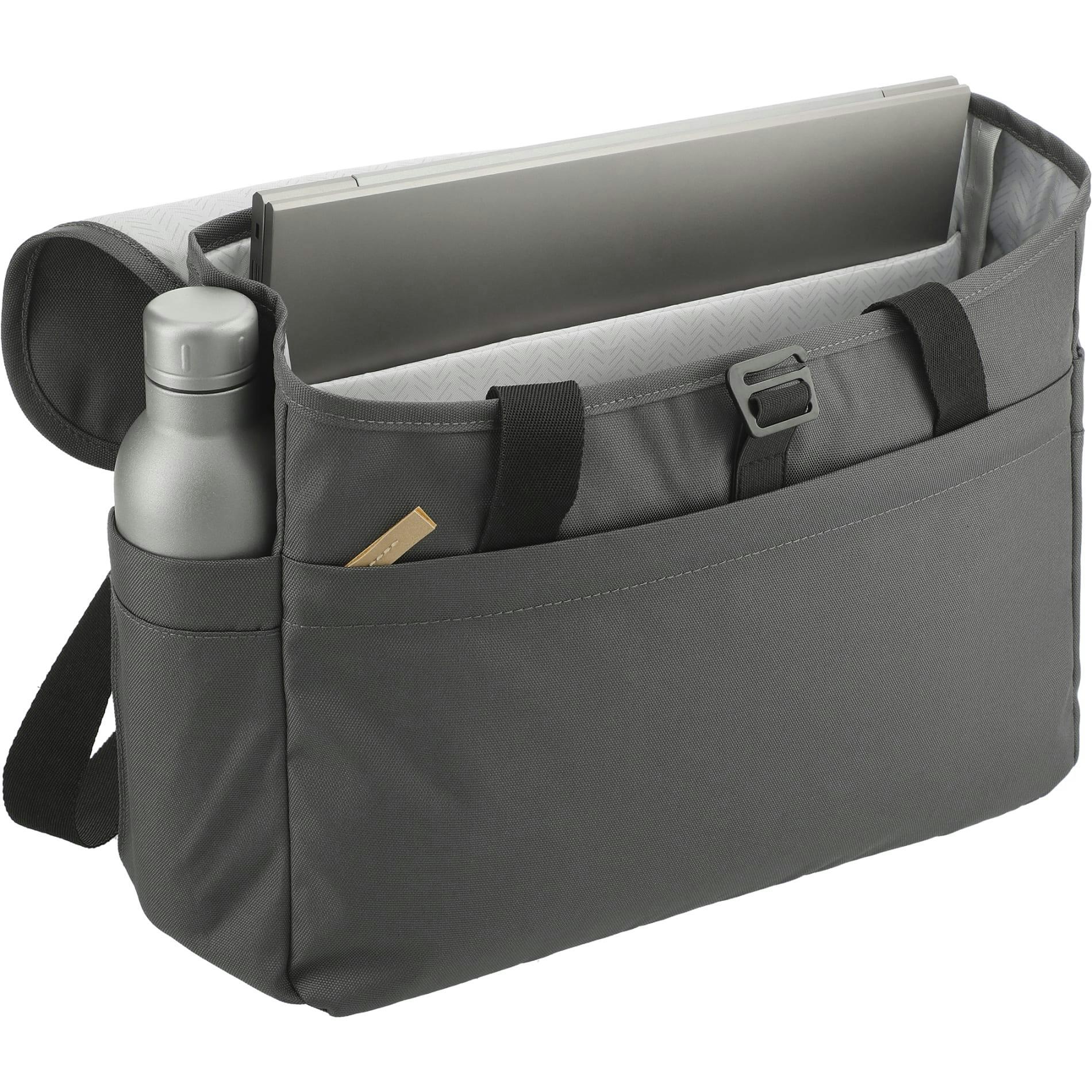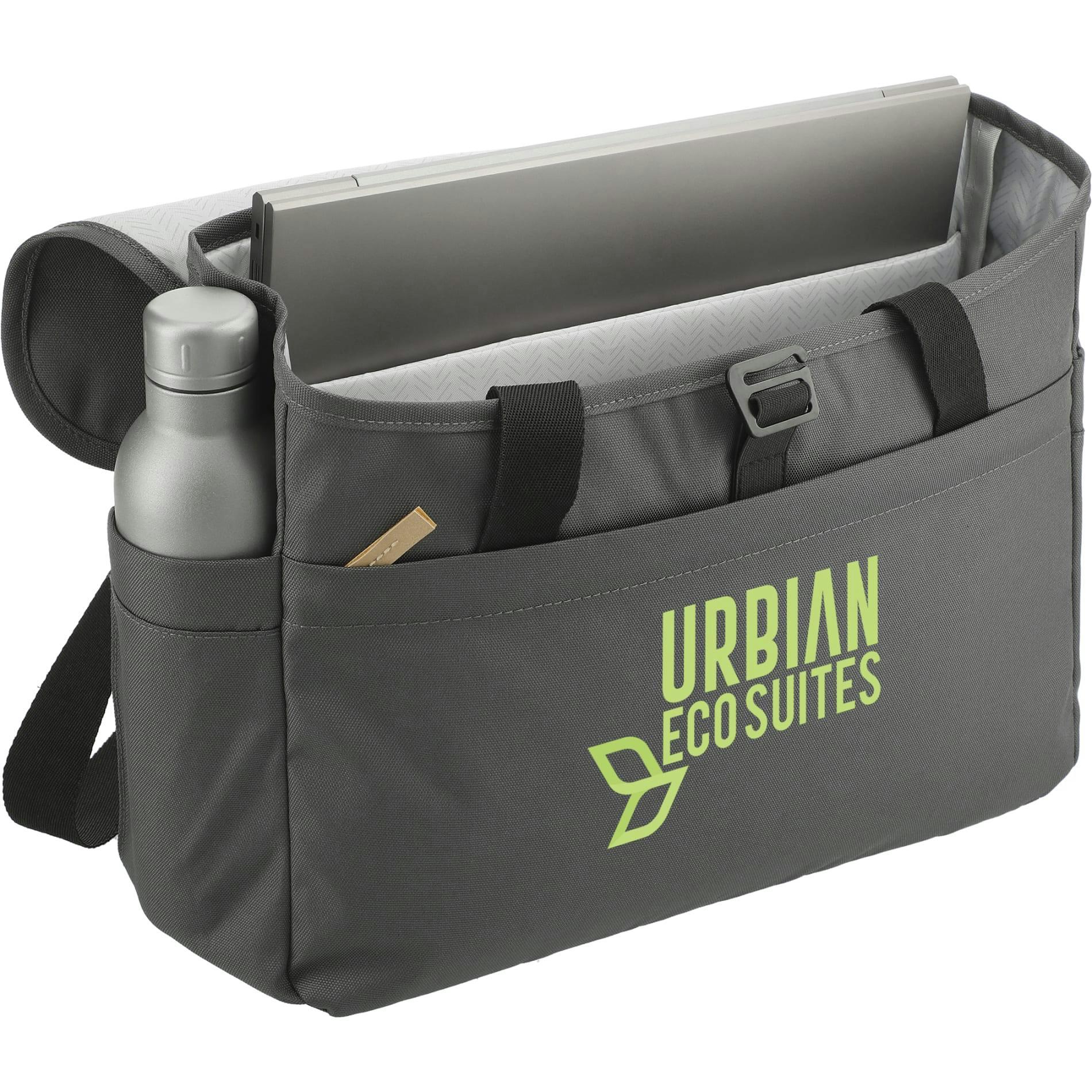 The Aft Recycled 15" Computer Messenger Bag is made from RPET, so it's as eco-friendly as it is stylish. The front zippered pocket offers an organizational panel for easy access to accessories you may need. The bag features two side water bottle pockets and a main compartment with a padded 15" computer sleeve – not to mention extra pockets for storage. This messenger bag also features a top grab handle and padded adjustable shoulder straps for comfy carrying.