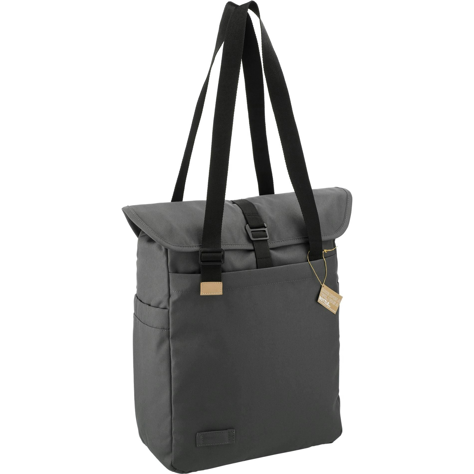 The Aft Recycled Computer Tote Bag is made from eco-friendly RPET, so you can feel as good as you look while carrying it. Keep your essentials in the front zippered pocket and store your reusable water bottle in either of the side pockets. The main compartment features a padded 15" computer sleeve as well as a smaller padded sleeve for your tablet. Adjustable carry straps let you find the perfect length, and the easy-to-use G-hook secures the flap over the main compartment.