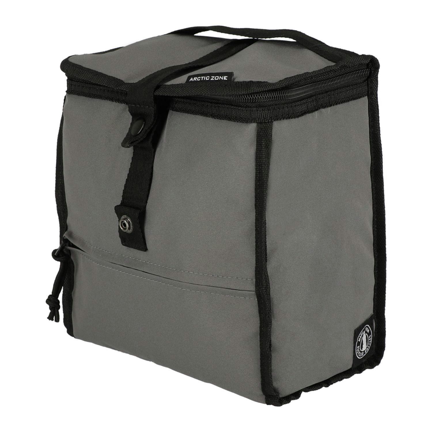 The Arctic Zone® Repreve® 6 Can Lunch Cooler is a versatile solution perfectly sized for all your lunch needs! Featuring a spacious main compartment with a reliable zippered closure, this cooler ensures ample room for your lunch essentials. Enjoy extra security with the snap closure on top, keeping your lunch fresh and secure. Convenience is key, thanks to the sturdy carry handle for easy transportation. Plus, take advantage of the zippered main compartment for additional storage. Upgrade your lunch experience with this perfectly designed, eco-friendly cooler.