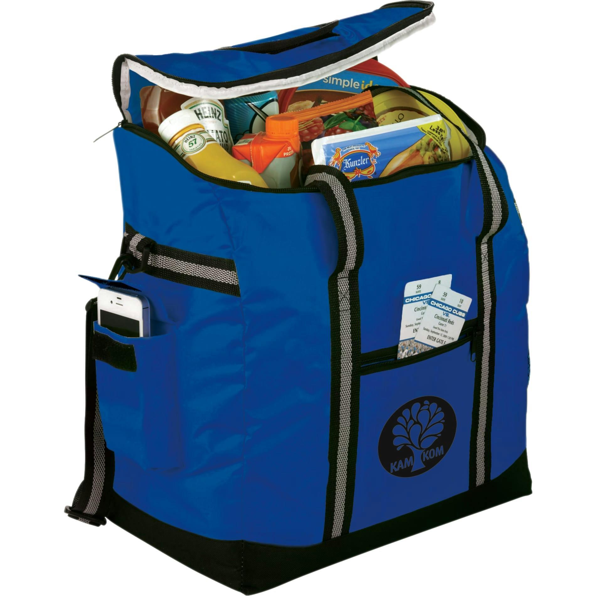 The Beach Side Deluxe 36-Can Event Cooler features PEVA insulation, a zippered main compartment and front pocket, a side mesh pocket, a side pocket with a hook and loop closure, and double 19" reinforced carry handles. Also includes a removable, adjustable shoulder strap.