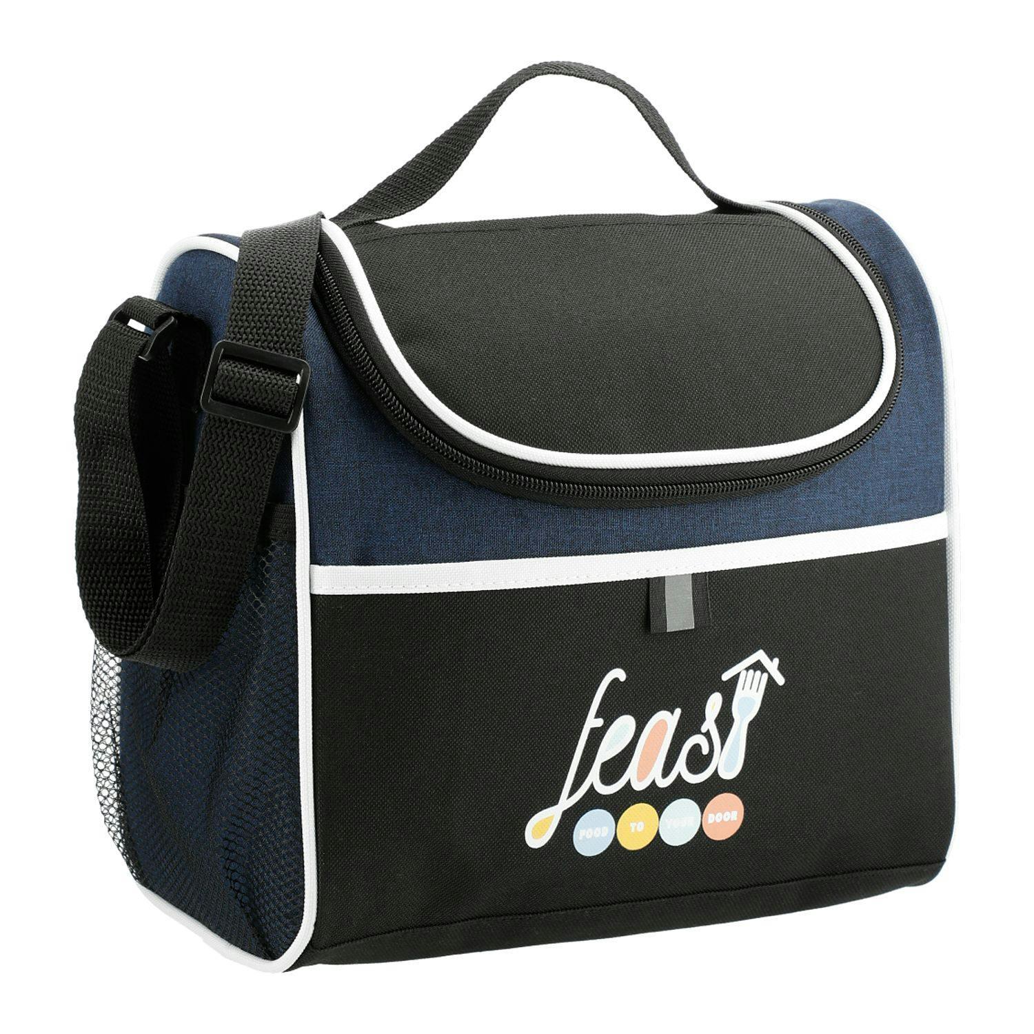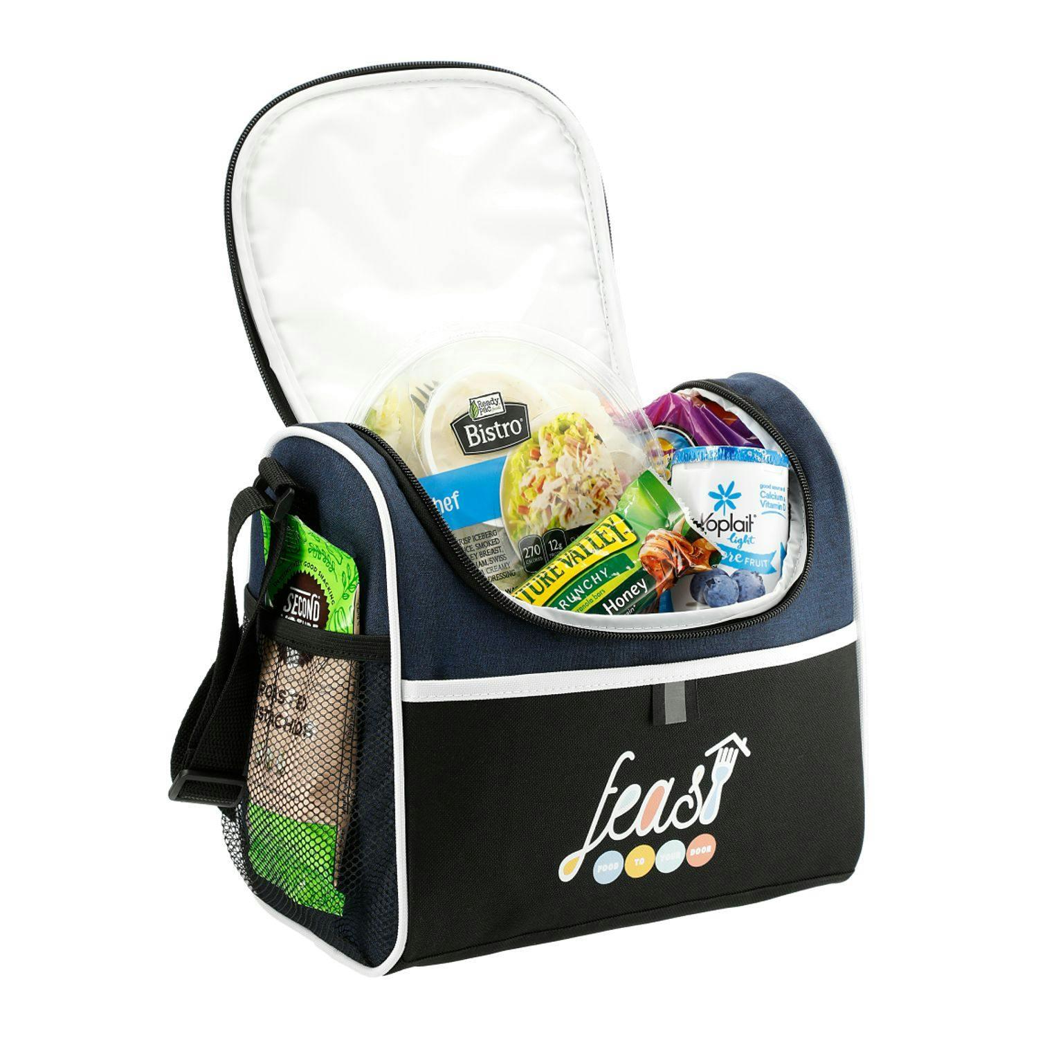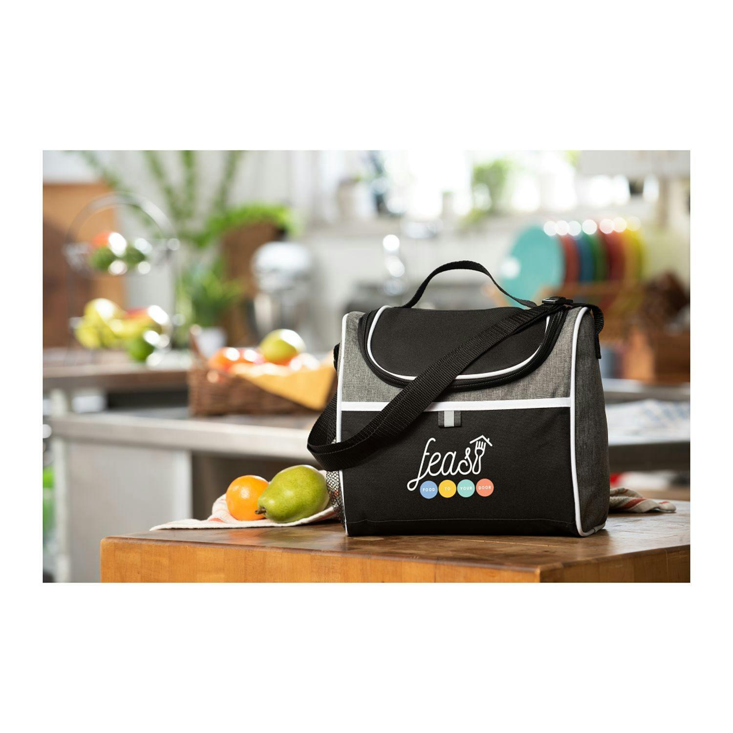 Insulated PEVA lining. Top grab handle. Side mesh pocket. Multiple decorating locations available. Two slip pockets on the front and top of cooler. Adjustable shoulder strap. Disclaimer: There may be minor variations in color of the actual product due to the nature of the fabric dyes, weaves, and printing.