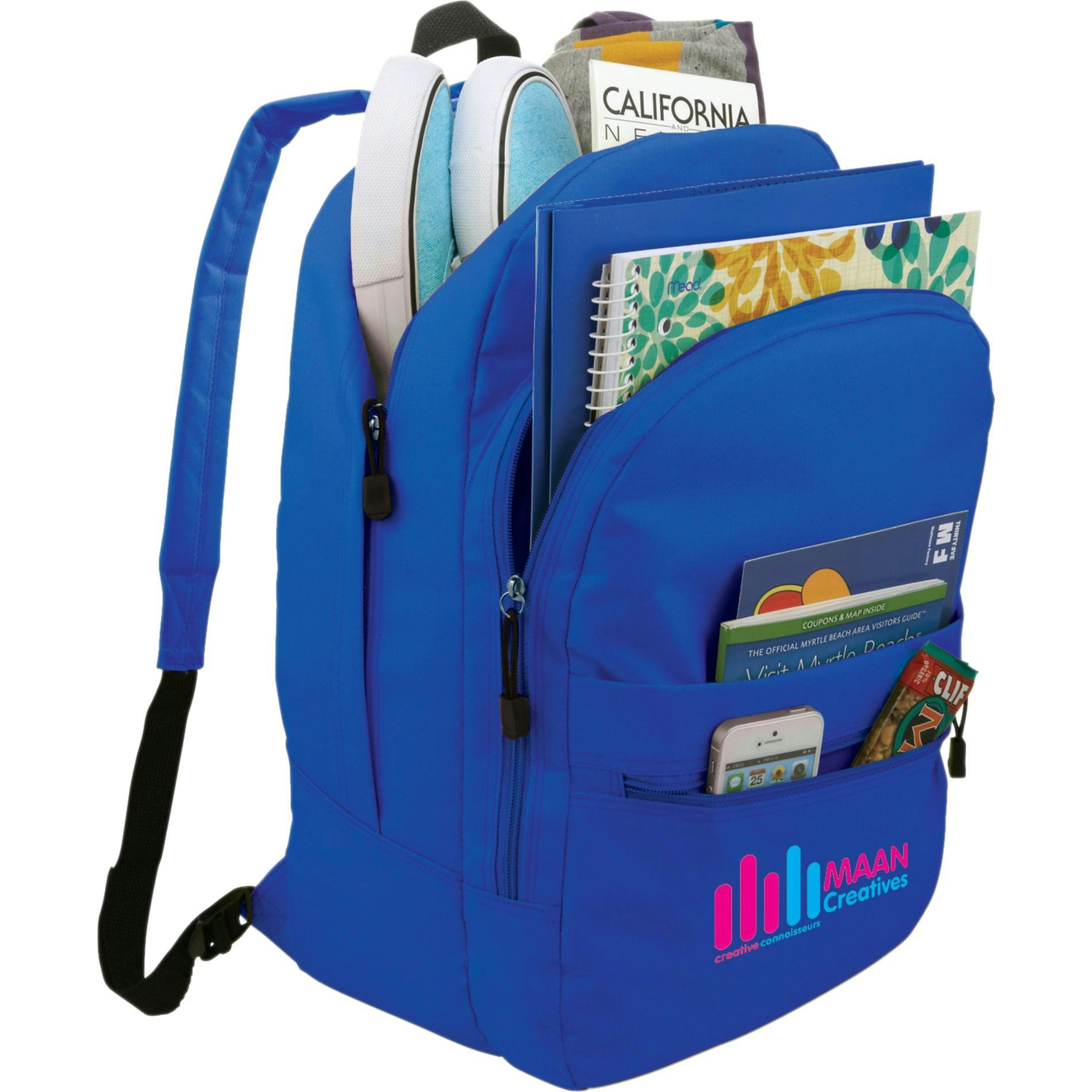 The Campus Deluxe Backpack features a large and spacious zippered main compartment, a large zippered secondary compartment and a zippered front pocket. The padded back panel includes adjustable reinforced padded shoulder straps and a top carry handle while elastic and plastic tabs on zipper pulls provide added functionality.
