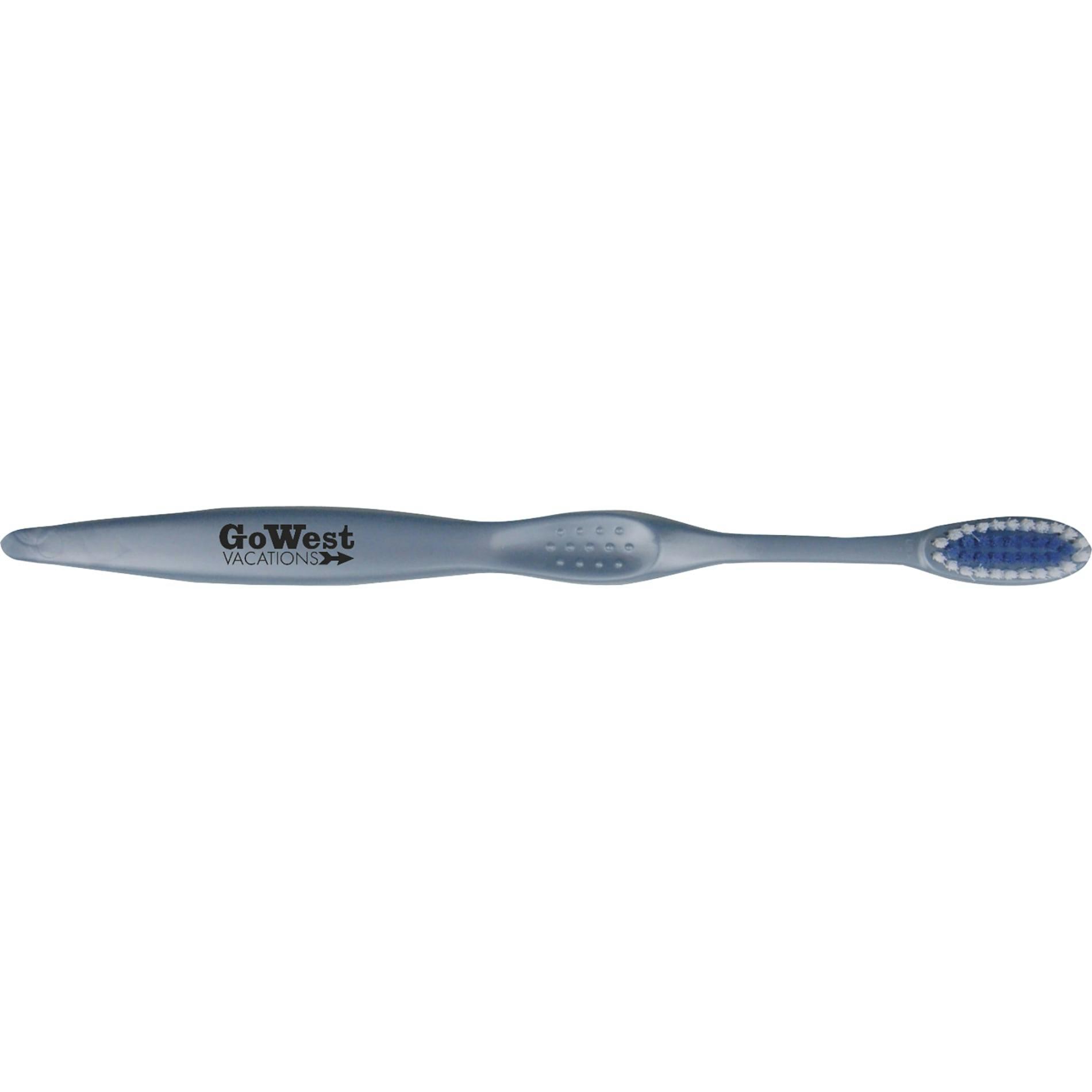PCNA Concept Curve Toothbrush — a soft-bristle adult toothbrush designed for comfortable, effective cleaning and ideal for promotional giveaways, hotels, dental offices and travel kits. Made in the USA and FDA-compliant, it features matching inner bristles and body colors for on-brand presentation; packaged individually in a polybag (0.05 oz). Optional matching travel caps are available at $0.20(G) each and are packed separately. Ships only within the United States (including Alaska, Hawaii & Puerto Rico); minimum order requirements apply. FOB ZIP: WI, 54703.