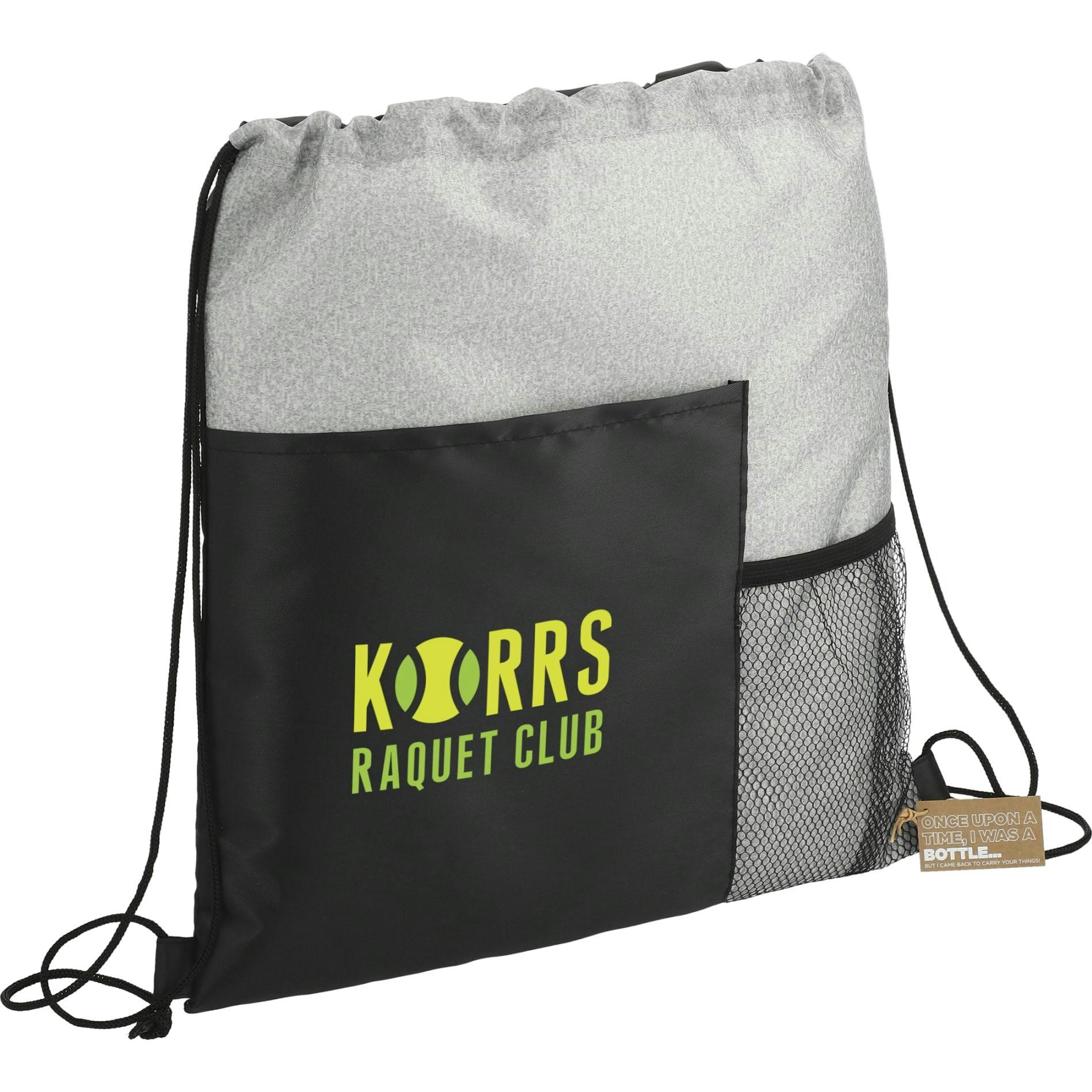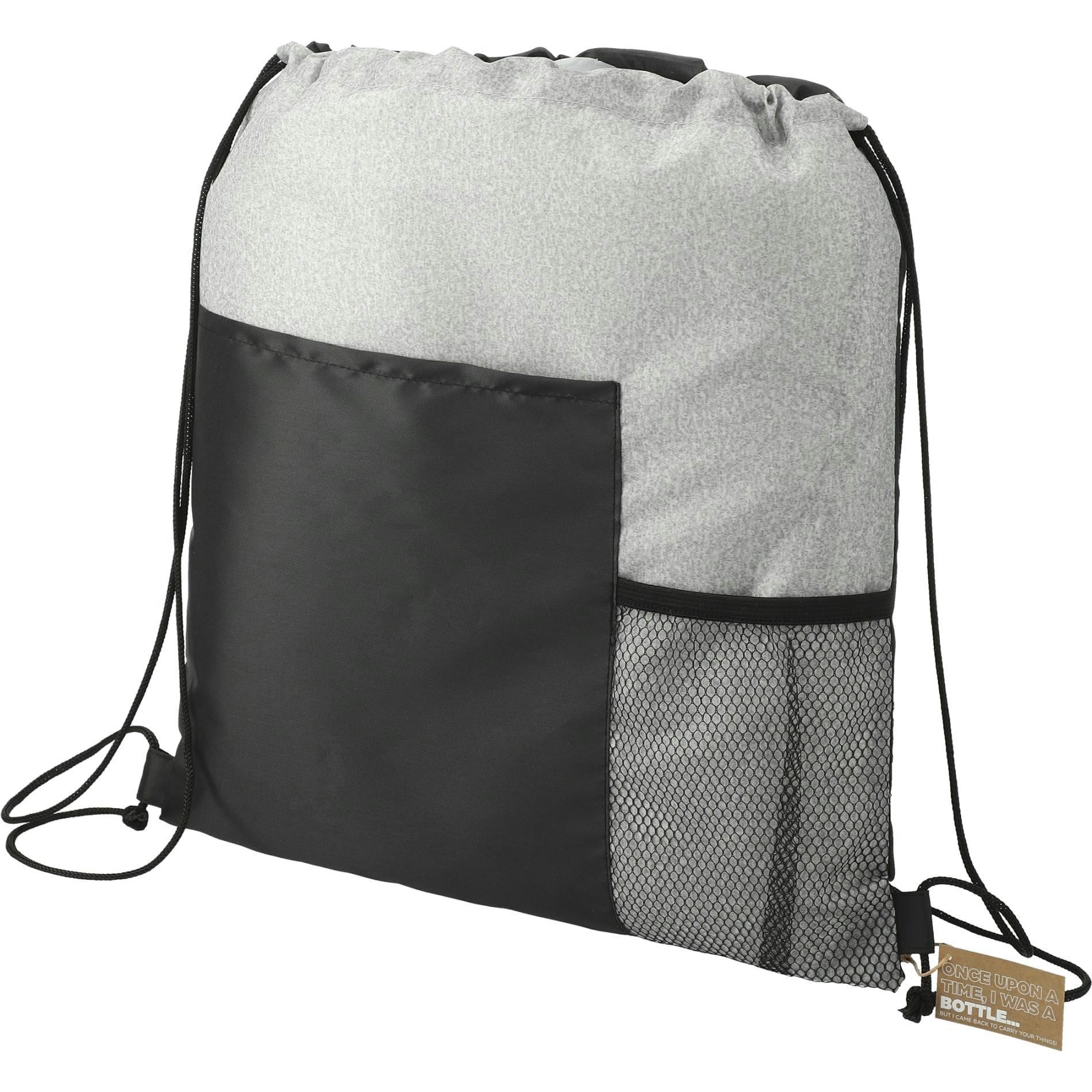 Made from RPET, the Cycle RPET Drawstring Bag offers a sustainable, functional option. Open main compartment with drawstring closure. Front slash pocket with mesh water bottle pocket.