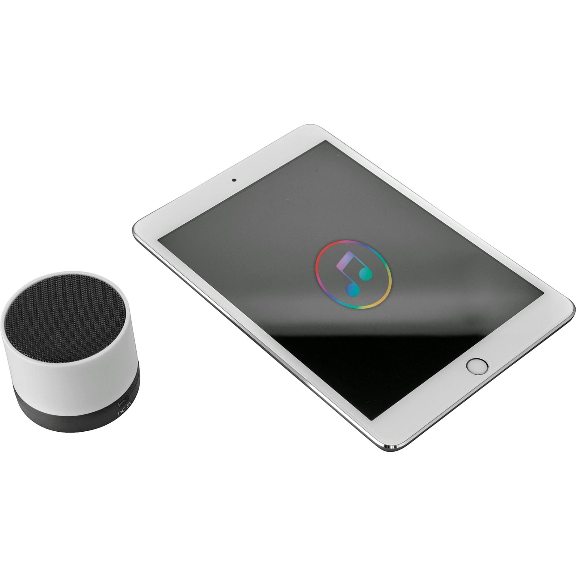 The Cylinder Bluetooth® Speaker is a lightweight speaker with an internal rechargeable battery that provides up to 1.5 hours of nonstop music. 3 Watt Speaker Output. Built in Microphone for conference calls. Includes Micro USB Charging Cable. The Bluetooth working range is 10 meters (33 feet). Charge time: one hour.