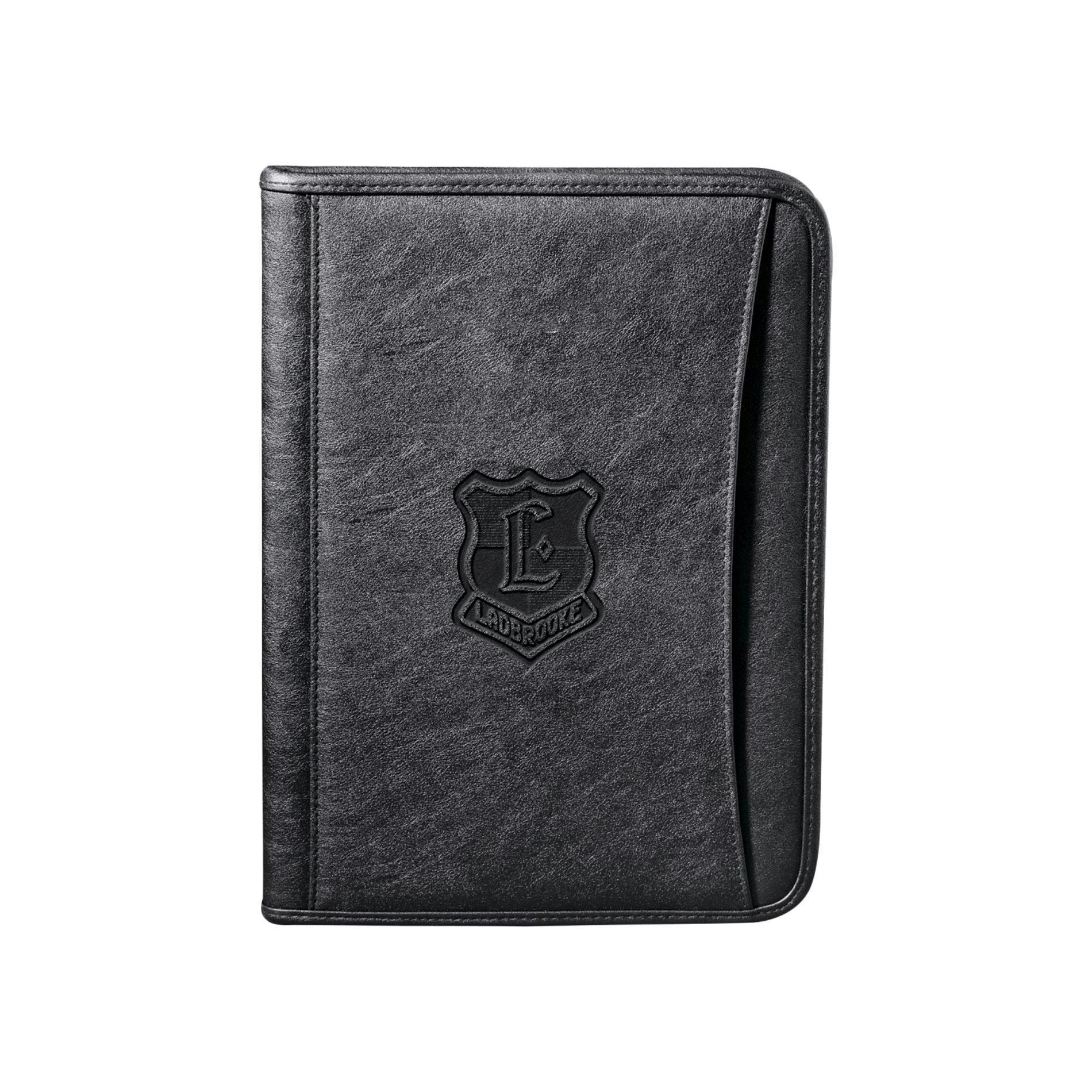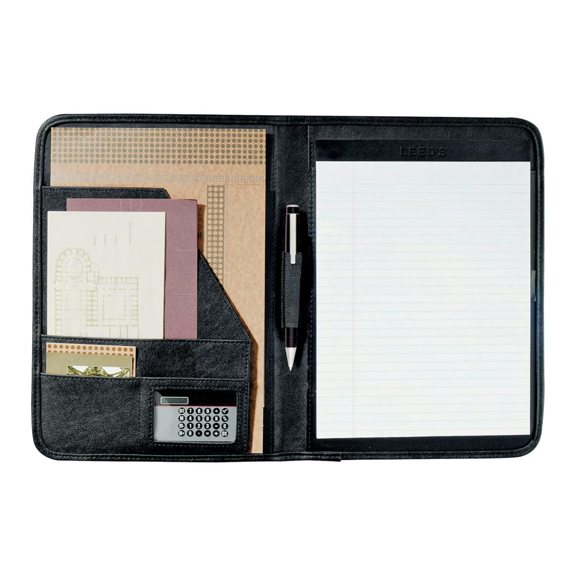 The DuraHyde Writing Pad features an interior organizer with gusseted file pocket, and a clear ID or calculator pocket. The DuraHyde Front includes a slot pocket and an 8.5" x 11" writing pad. Refill item number: 9091-01. Pen not included.