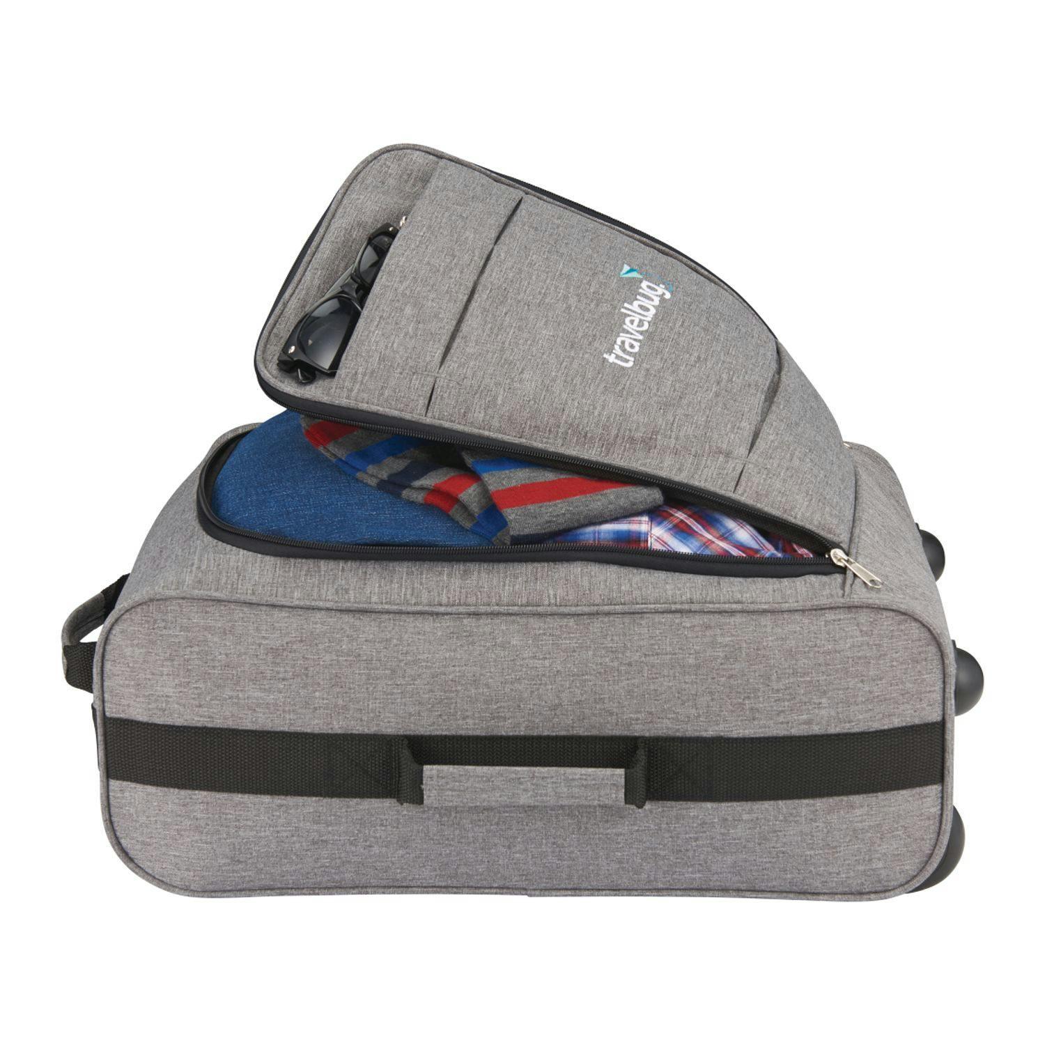 The Heather 20" Upright Luggage features a large open main compartment, front zippered pocket and an adjustable trolley handle.