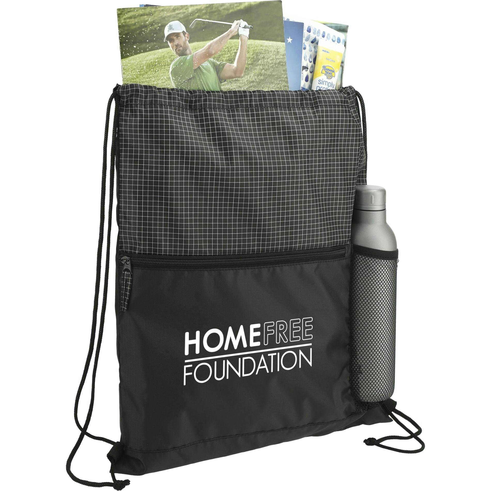 Lightweight, durable, and ready for anything, the custom printed Grid drawstring bag is made from sturdy 210D polyester to handle daily essentials with ease. Measuring 18" x 15", it offers plenty of space while remaining compact and easy to carry. The secure drawstring closure keeps belongings safe, and an included pouch adds extra convenience.