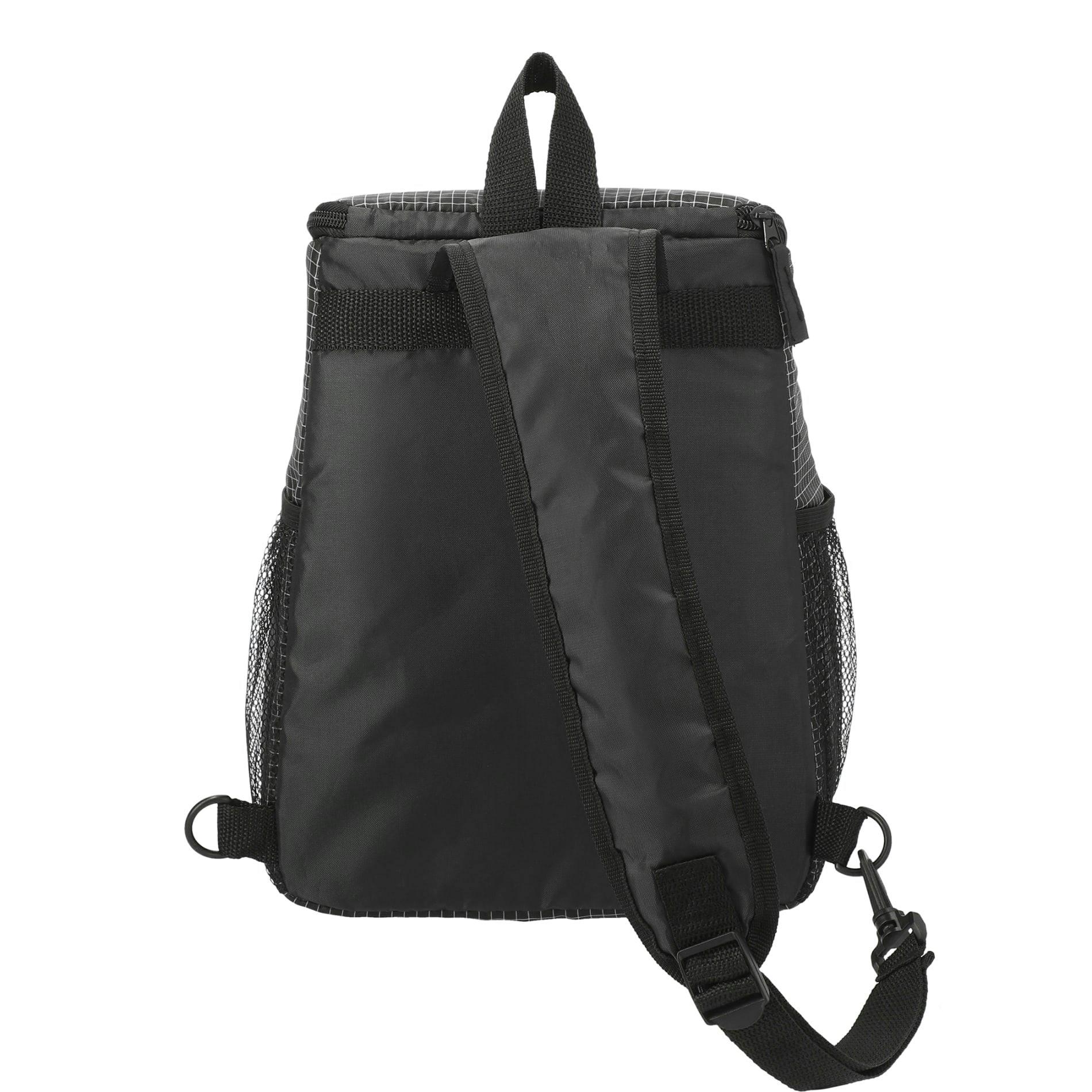 Convenience meets style with the Grid Sling 12 Can Cooler. It's super easy to carry with the adjustable strap, and it can hold up to 12 cans! It also features a mesh side pocket perfect for your drink and a front pocket for storage and easy access.