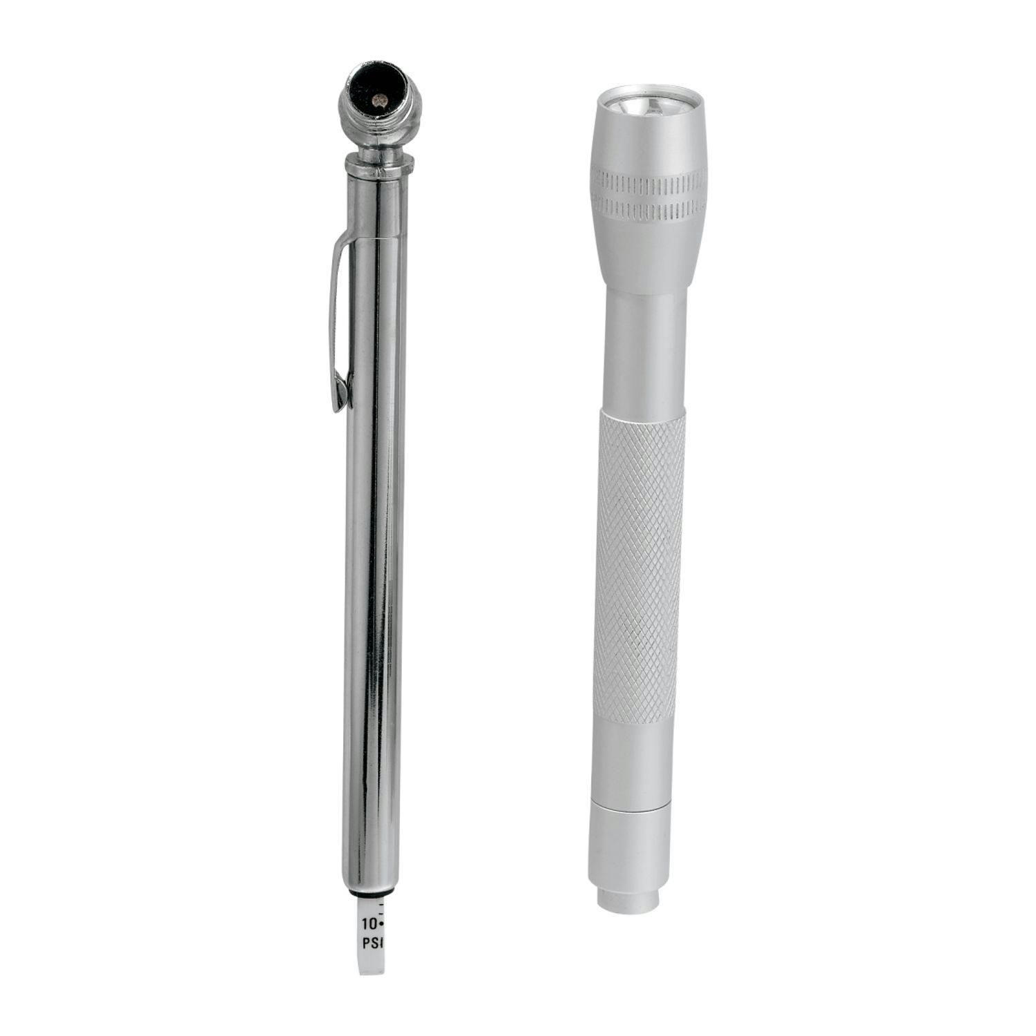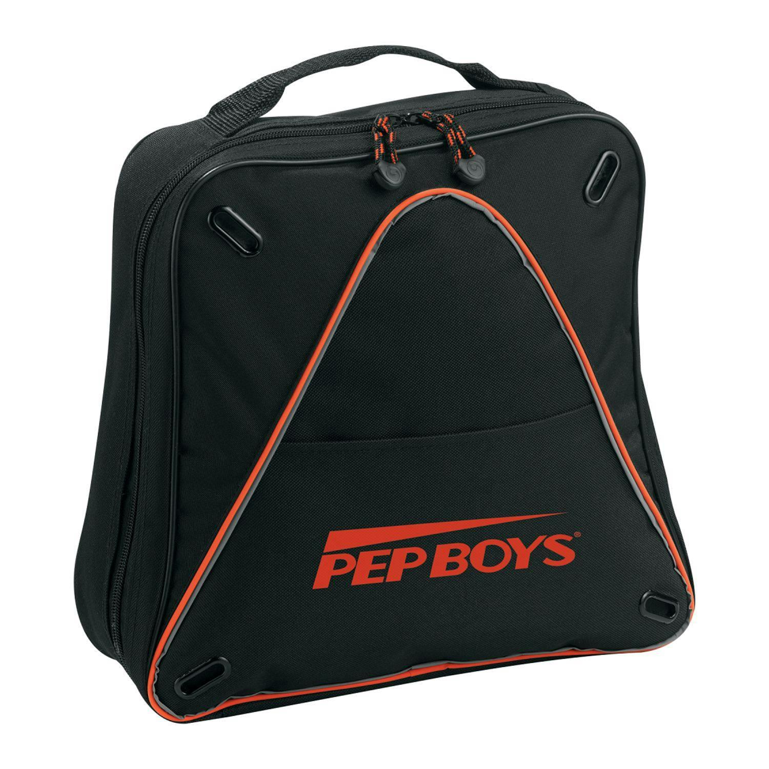 Provide safety and peace-of-mind when on the road. This 12-piece set includes 200-amp jumper cables, warning triangle, gas siphon, Mylar blanket for staying warm, two bungee cords, two glow sticks, a pair of gloves with rubber grips, flashlight (two AAA batteries included), 50 PSI tire gauge, and carrying case with organizational pockets for securing the contents.