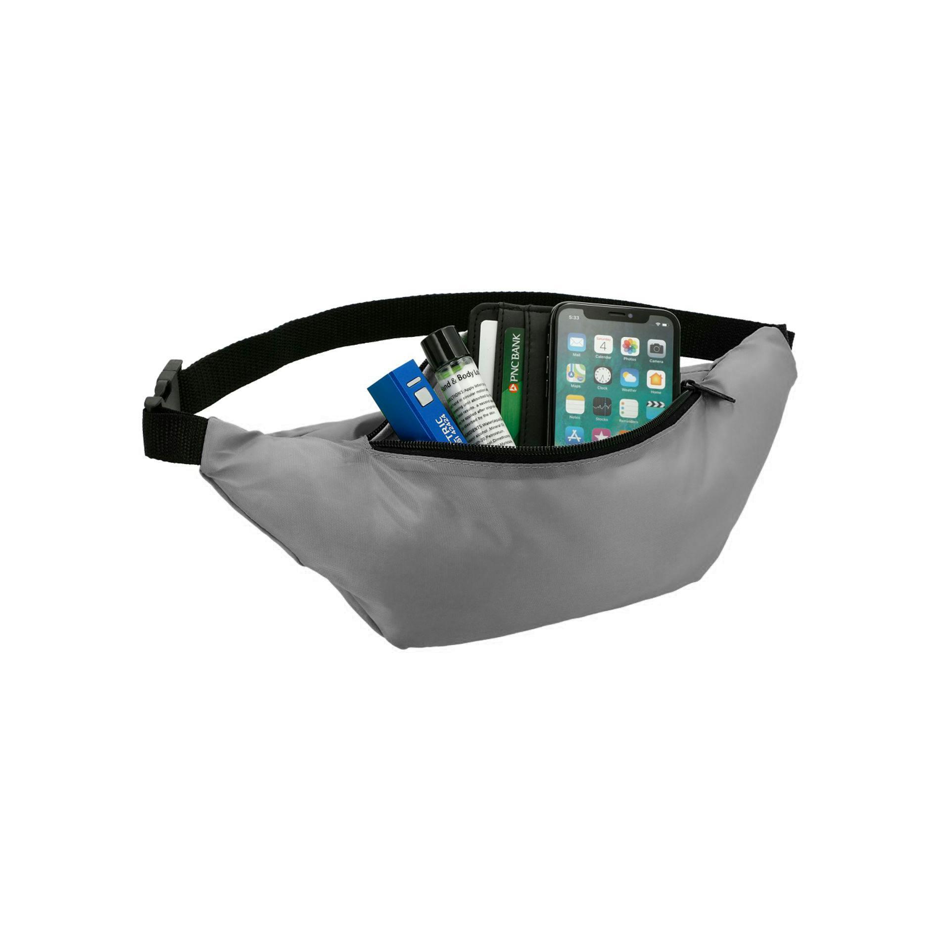 The Hipster Recycled rPET Fanny Pack is as cool as they come with a zippered main compartment and an adjustable waist strap and buckle. The belt extends to be about 47in. This fanny pack is made from recycled water bottles.