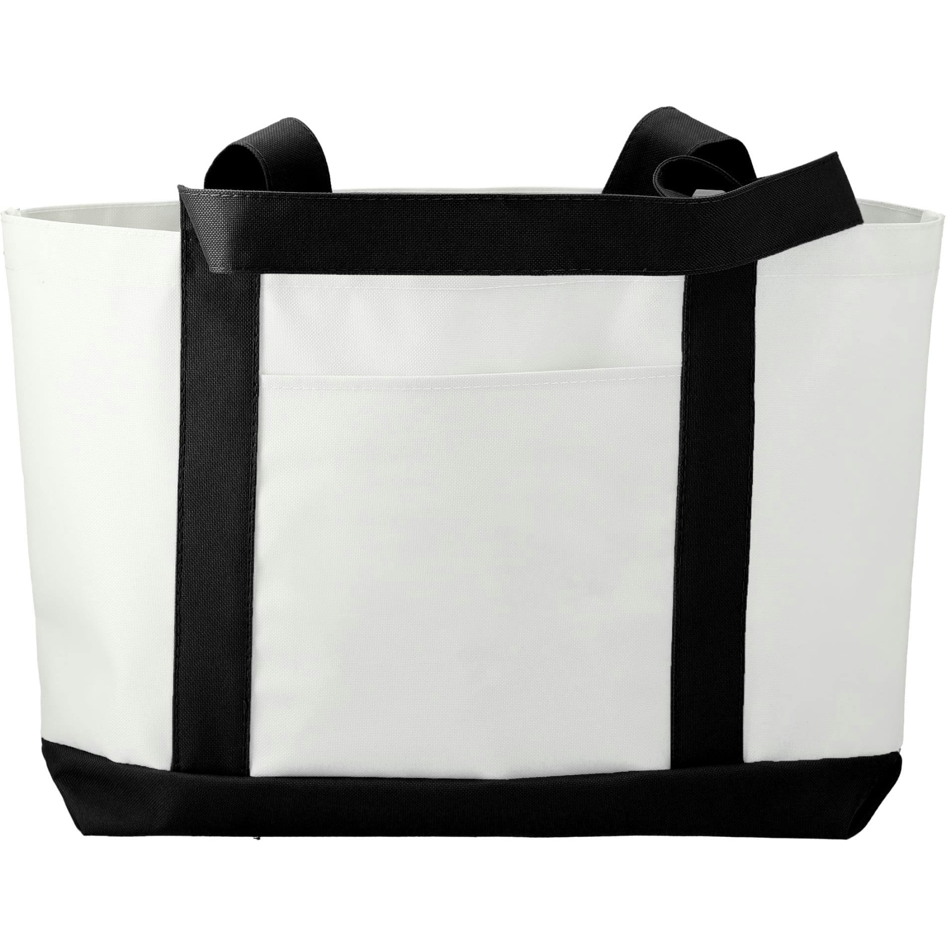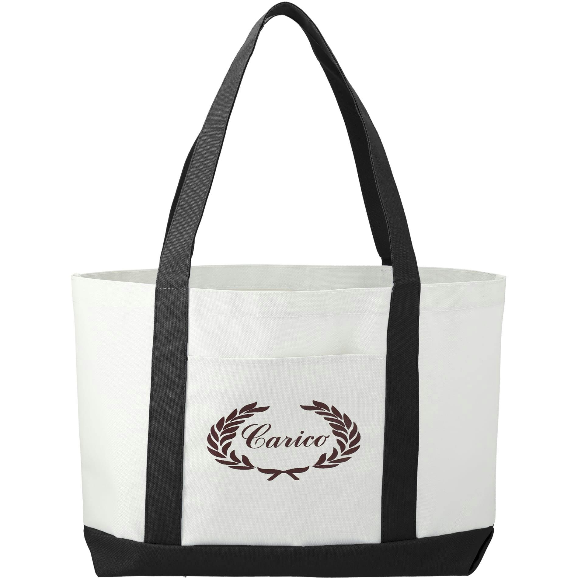 The Large Tote has a large open main compartment with an open front pocket and double 23 inch handles. Disclaimer: Gusset & Handle Decorating is Transfer Only and does not qualify for one day return.