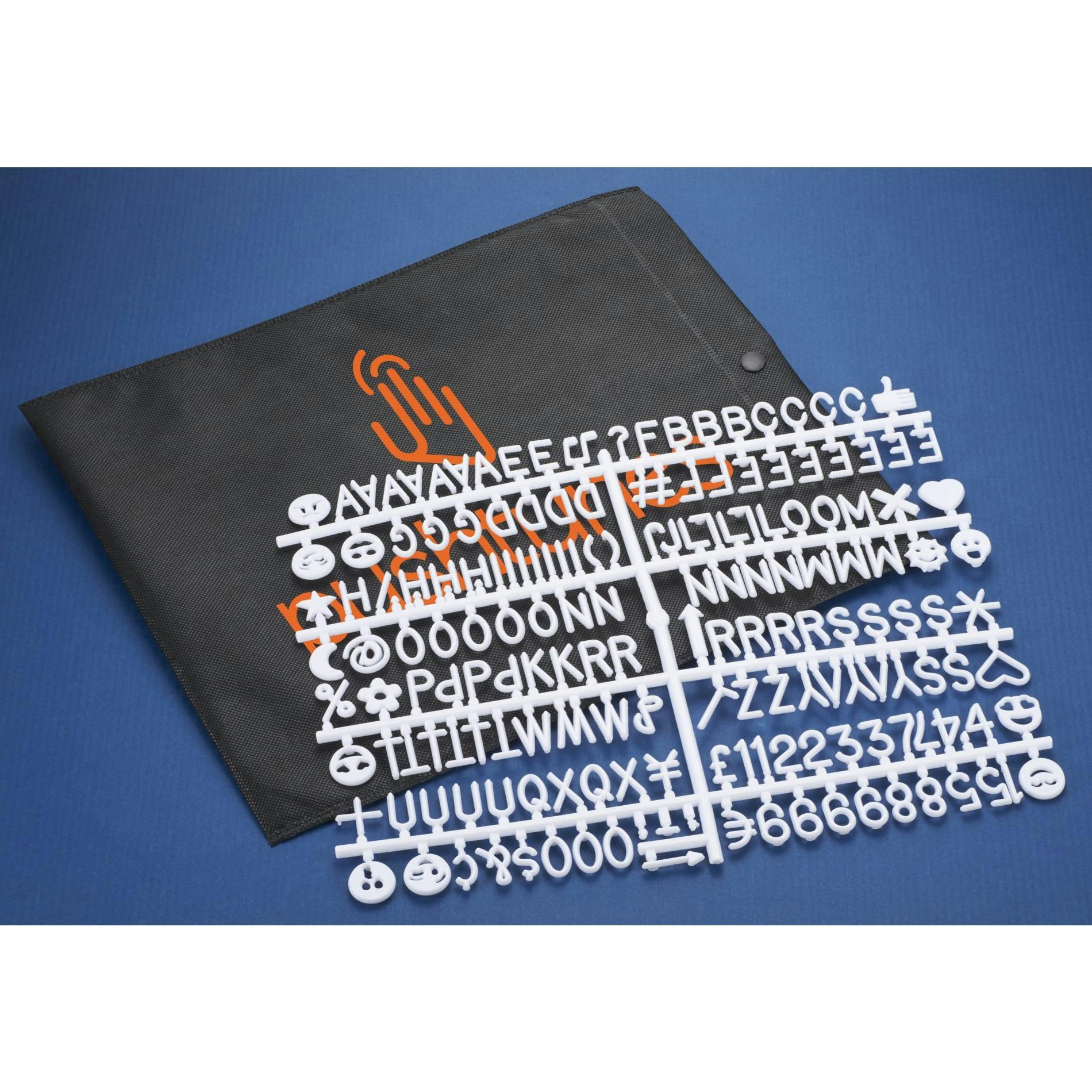 Bring your message to life with this 170-piece letter and symbol set, designed exclusively for the SM-3201 Felt Board. Each lightweight plastic character attaches securely for clear, easy-to-read announcements, menus, décor, or event displays. The set comes packaged in a non-woven carry pouch, making organization and transport effortless. Add your logo to the pouch and create a custom-branded accessory that keeps your messaging tools ready wherever inspiration strikes.
