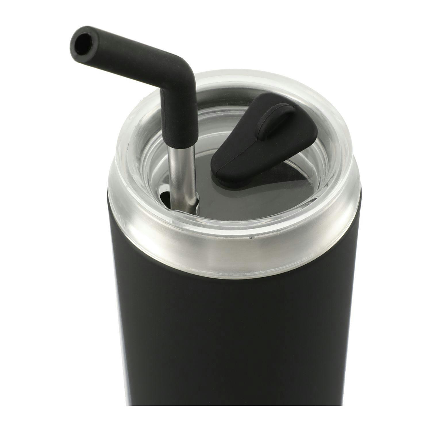 The Marka Copper Vacuum Insulated Tumbler features durable, double-wall stainless steel vacuum construction with copper insulation, which allows your beverage to stay cold for 24 hours and hot for at least 8 hours. The construction also prevents condensation on the outside of the tumbler. Comes complete with the on-trend, durable, powder coated appearance and a push-on, see-through, spill resistant lid with the silicone closure. The reusable straw is made of 18/8 food grade stainless steel material and is perfect for drinking cold beverages. Comfortable sipping experience with the silicone tips. The stainless steel straws are Eco-friendly, environmentally responsible, and sustainable as they are reusable and dishwasher safe. Straws are included not inserted. 20oz.