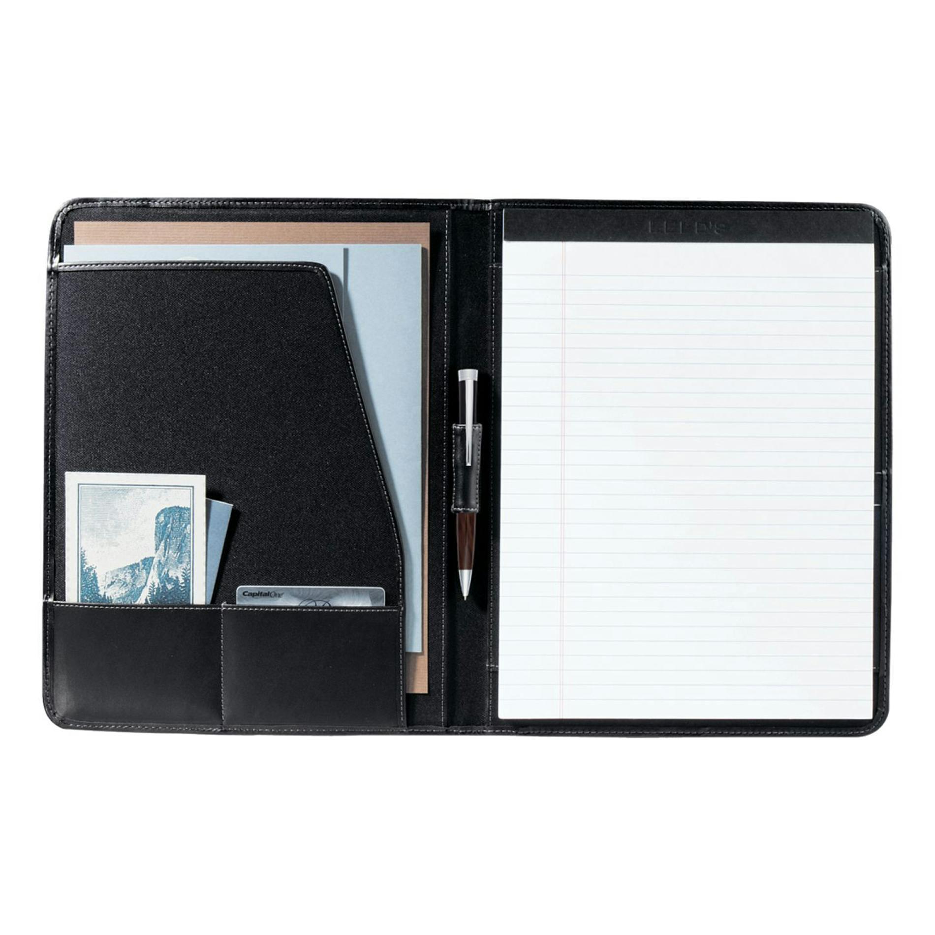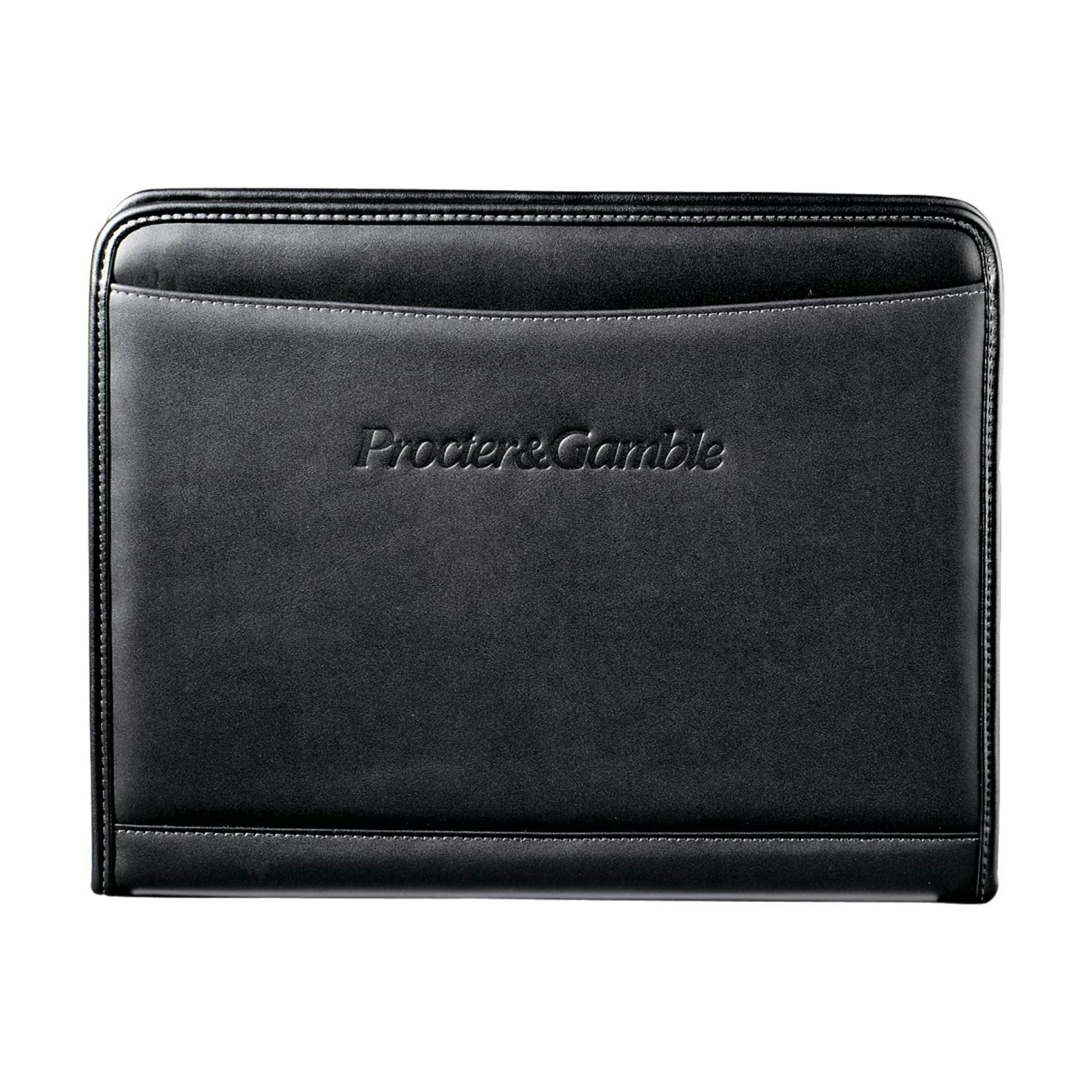Crafted from genuine top-grain leather, this premium padfolio delivers timeless style and everyday functionality. The secure zippered closure keeps your documents protected, while the built-in organizer offers space for business cards, files, and essentials. A refillable 8.5" x 11" writing pad is included, and the elastic pen loop ensures your favorite pen is always within reach. Perfect for meetings, travel, and professional settings—just add your logo to make it uniquely yours.