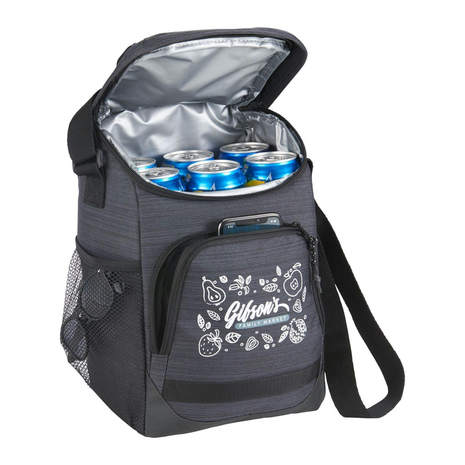 The Mayfair 12 Can Lunch Cooler is an on-trend cooler designed to support your every need. This cooler features a PEVA lining. The front vinyl lash tab compliments the high quality material of this cooler. Switch out the interchangeable zipper pullers for a custom look. Pieces come installed with black pullers but can be easily switched out for red or olive. This cooler features an interior ID label for easy identification.