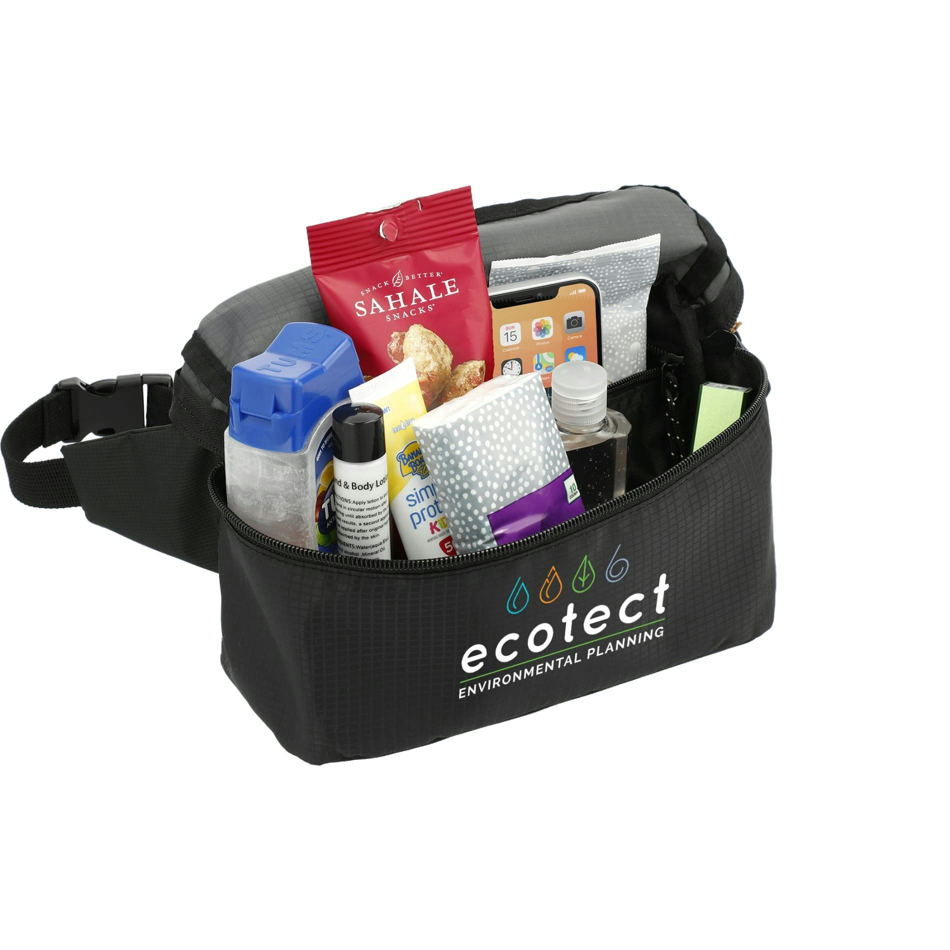 The NBN Trailhead Recycled Fanny Pack is made with recycled material and features a zippered main compartment, plus an adjustable waist belt. Inside the main compartment is a zippered pocket for extra storage. The waist strap extends out to 45”. Interchangeable zipper pulls let you customize this stylish fanny pack.
