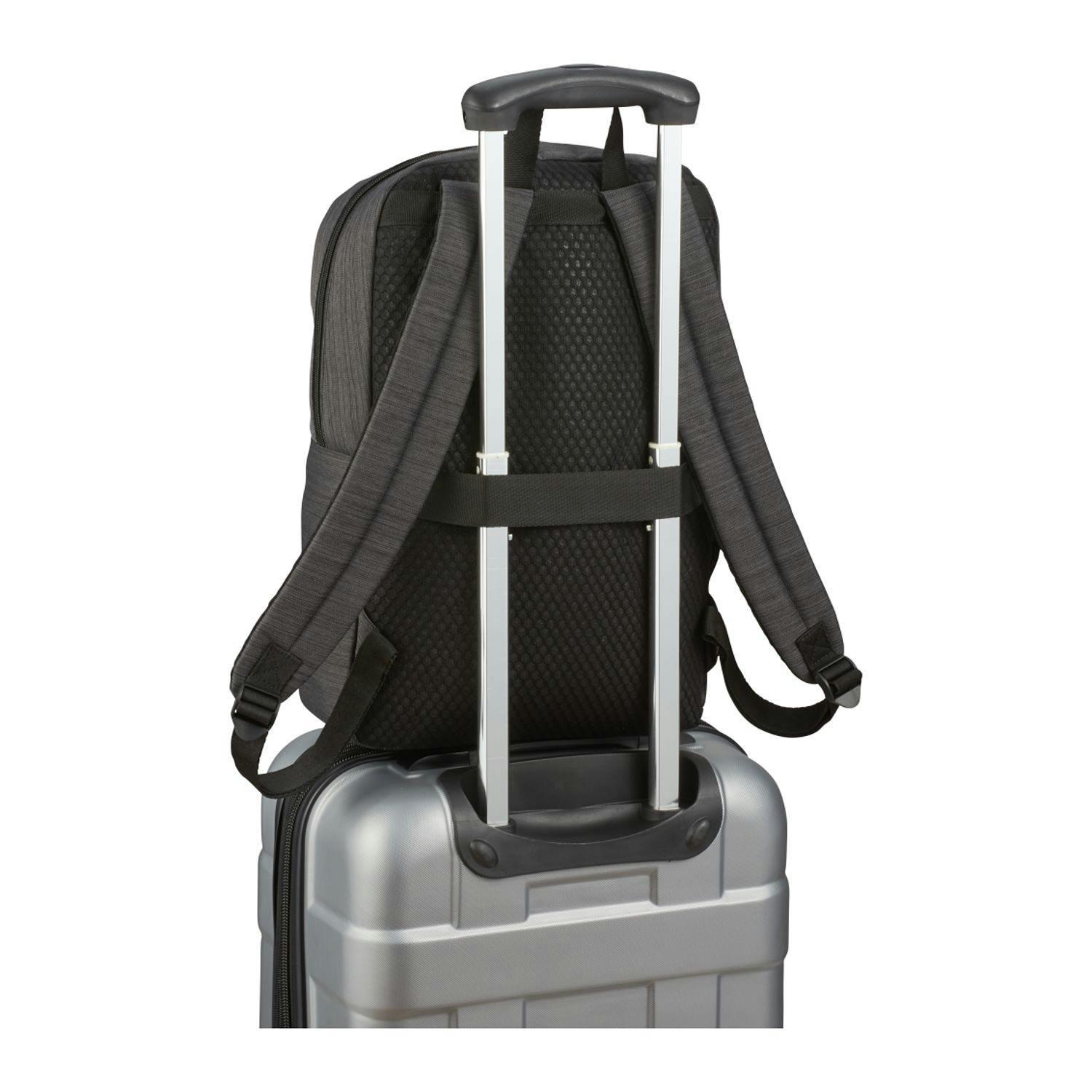 NBN stands for "No Brand Needed." The NBN Whitby Slim 15” Computer Backpack w/ USB Port gives you everything you need but in a sleeker, slimmer silhouette. This backpack features a side USB port with cable, custom printed lining, and a side water bottle pocket. Add-ons like a premium vinyl lash tab, padded 15” laptop sleeve and zippered front pocket make this backpack perfect for every day. Carry with ease with the padded back and shoulder straps, or attach to luggage with the trolley sleeve. Looking for a new way to showcase your brand? This bag includes an oversized zipper pull that's available for decoration.