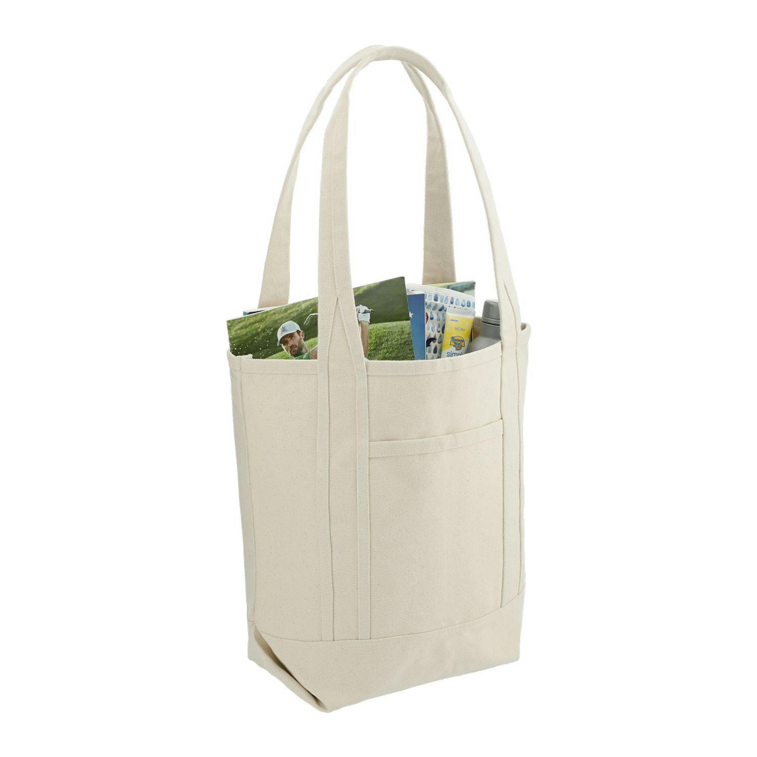 The Organic Cotton Tote is made from GOTS OE Cotton. This sustainable take on a classic style features a front slash pocket and double 12.5" drop handles.