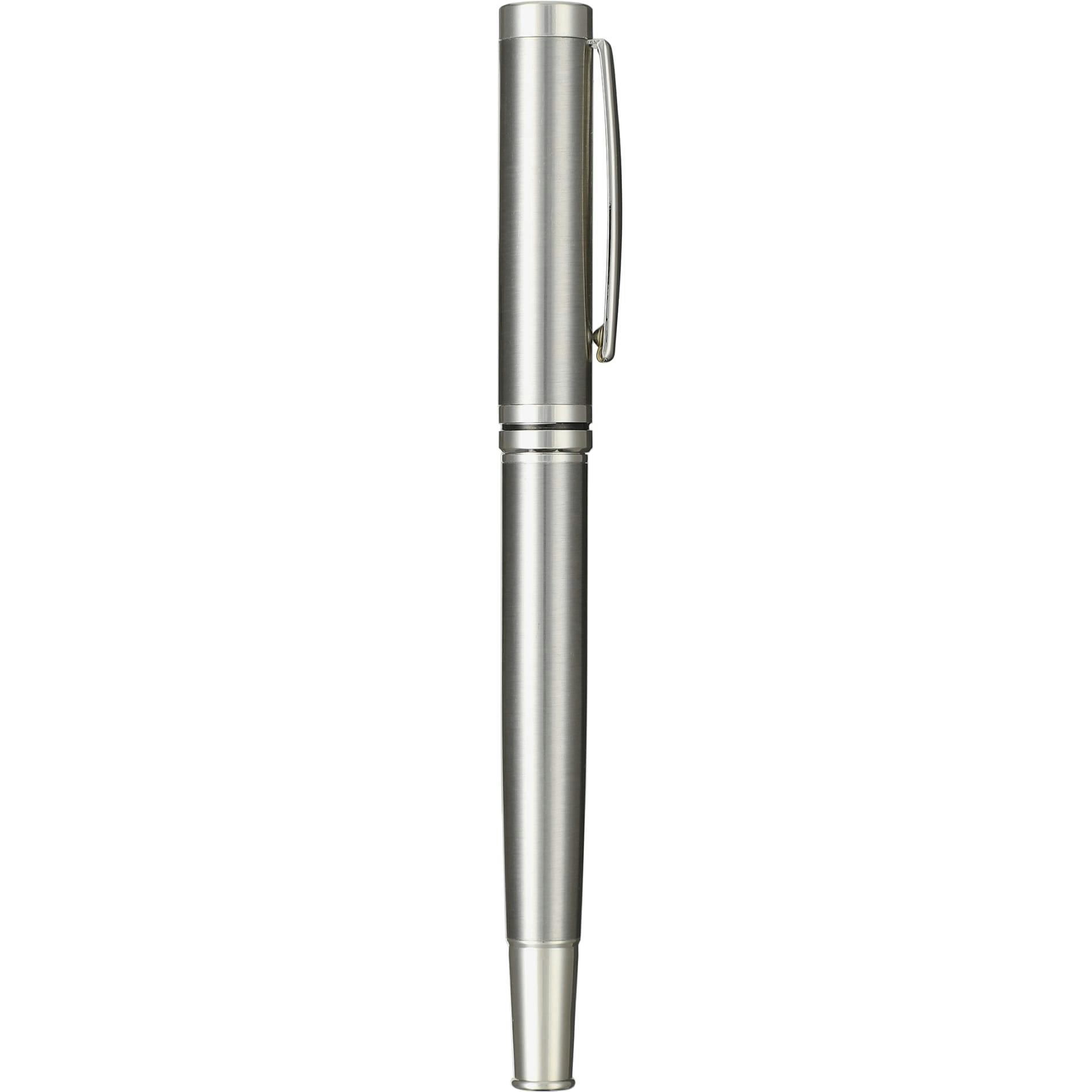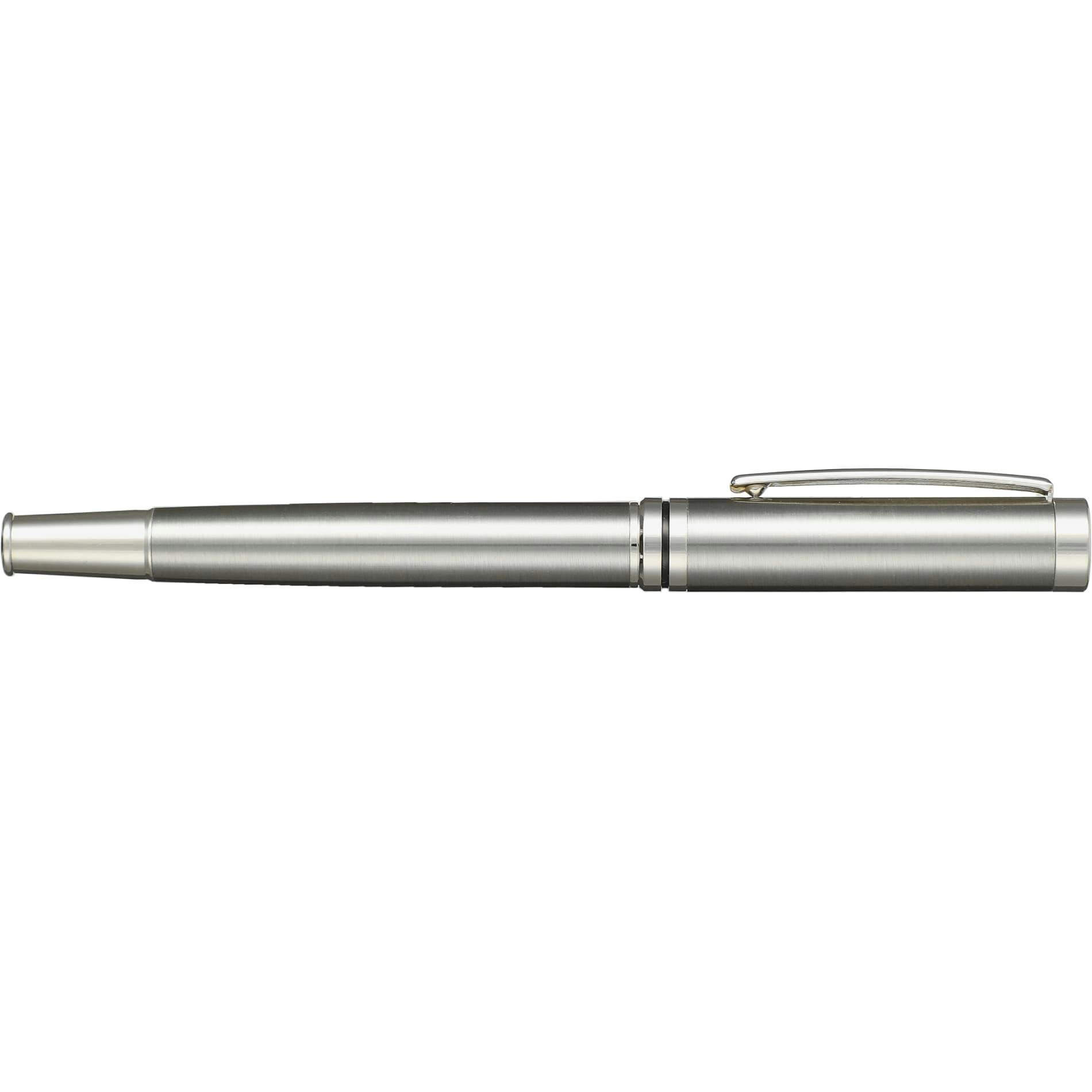 Give your brand a polished, eco-friendly touch with this Recycled Stainless Steel Rollerball Pen. Featuring a recycled stainless steel barrel, shiny chrome accents and a precise 0.7mm rollerball tip, it delivers smooth black ink for up to 400 meters of writing—perfect for notes, signings, trade shows and everyday use. Packaged in an FSC-certified pen sleeve and part of the EcoSmart® line, 1% of sales are donated to environmental nonprofits through 1% For The Planet. A stylish, sustainable promotional pen that makes a lasting impression.