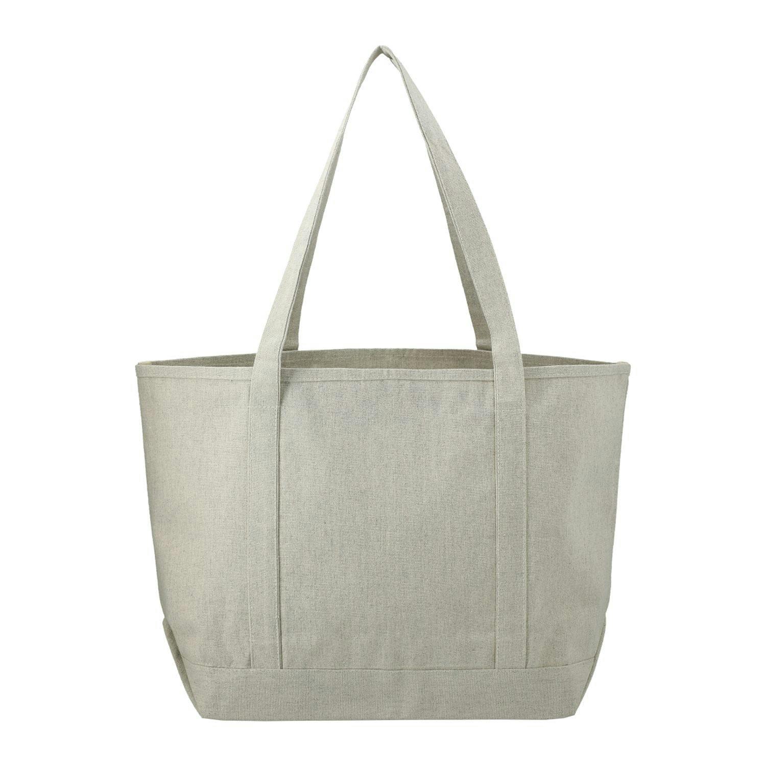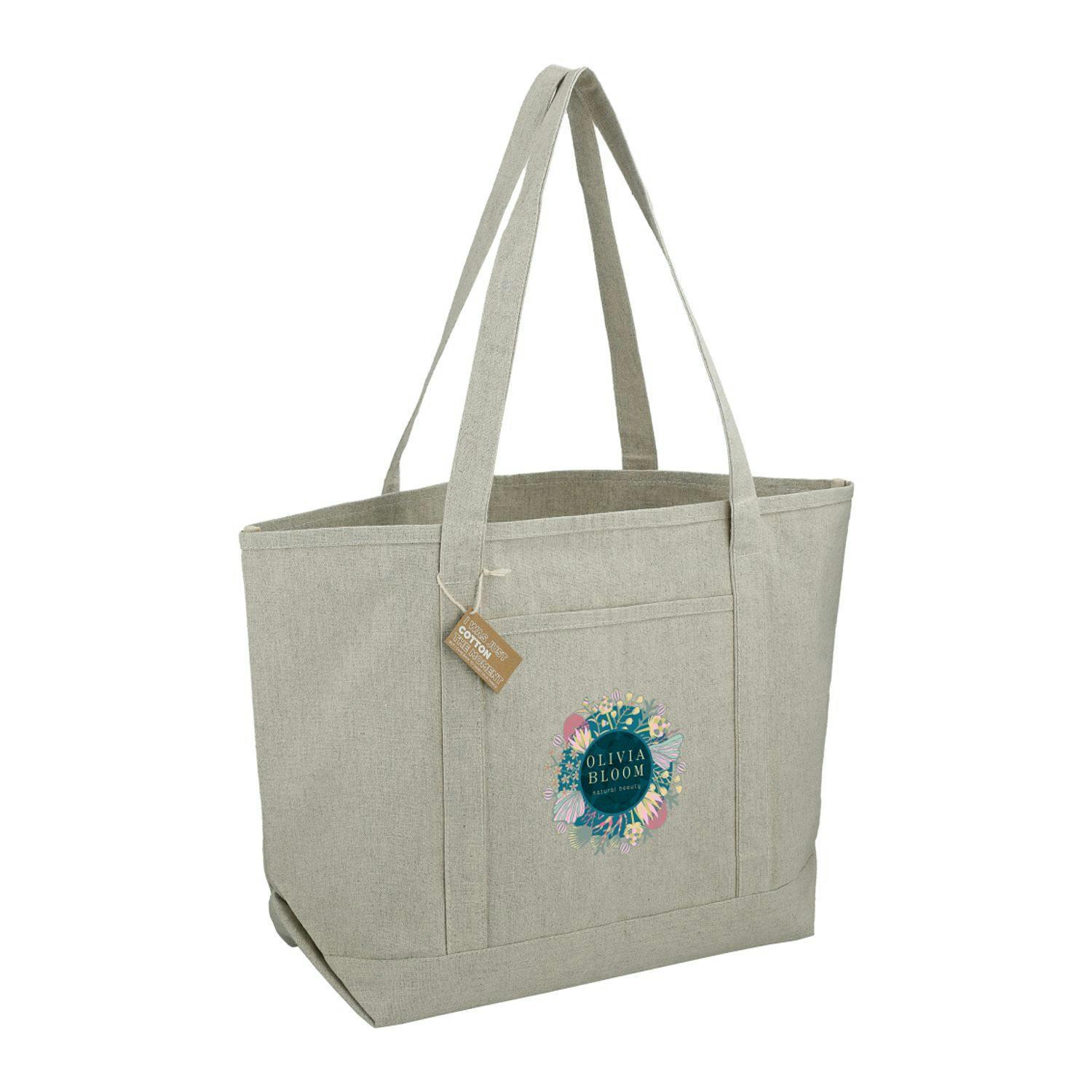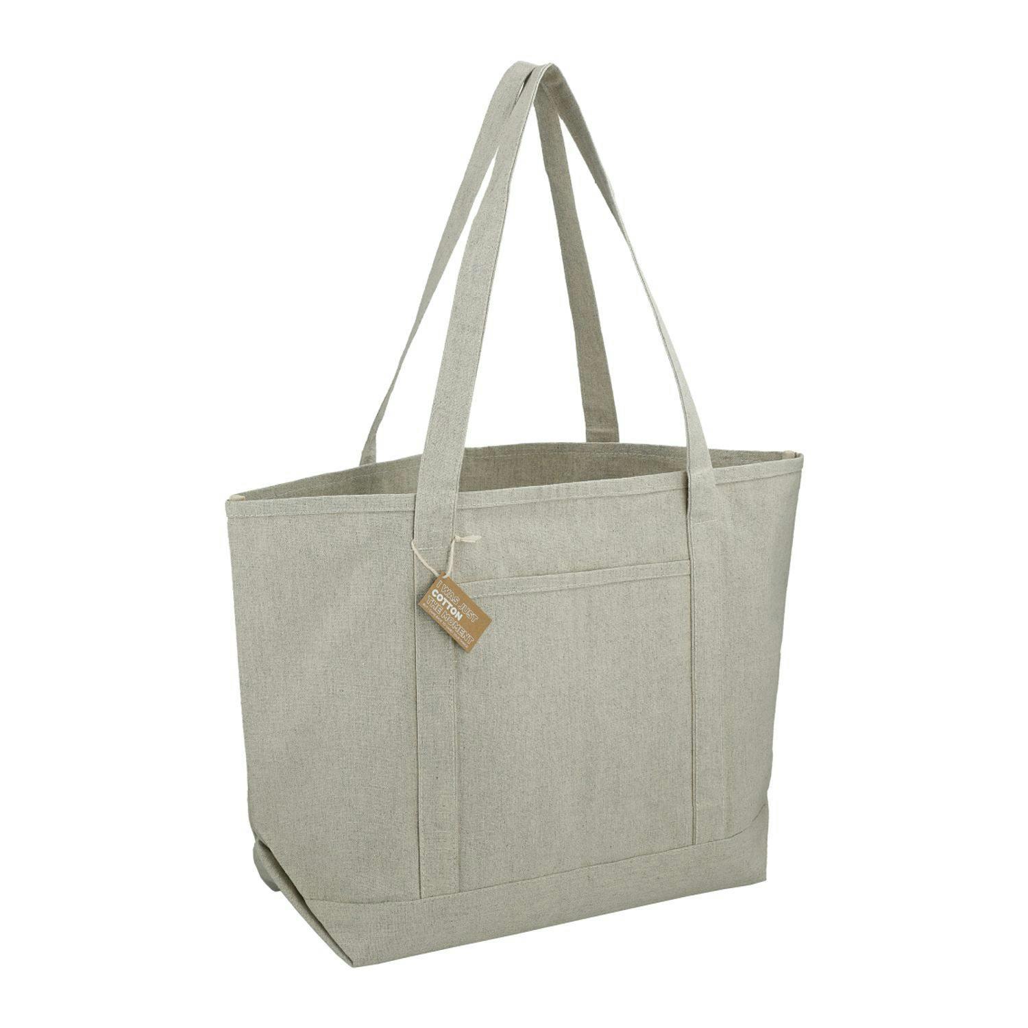 The Repose 10oz Recycled Cotton Tote is made from pre-consumer recycled cotton. It features an open main compartment, slash front pocket, and double handles.
