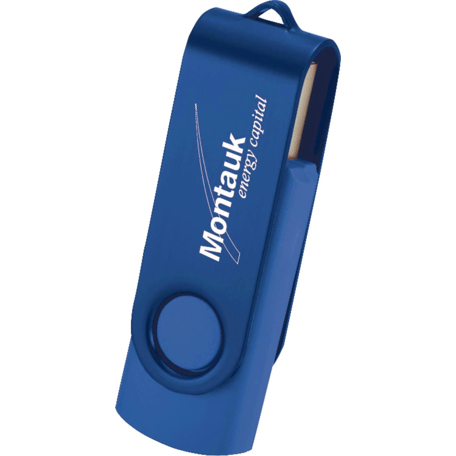 Flash drive folds into a protective aluminum cover. RoHS compliant. Plug and play technology on Windows XP or above and Mac OSX or higher.
