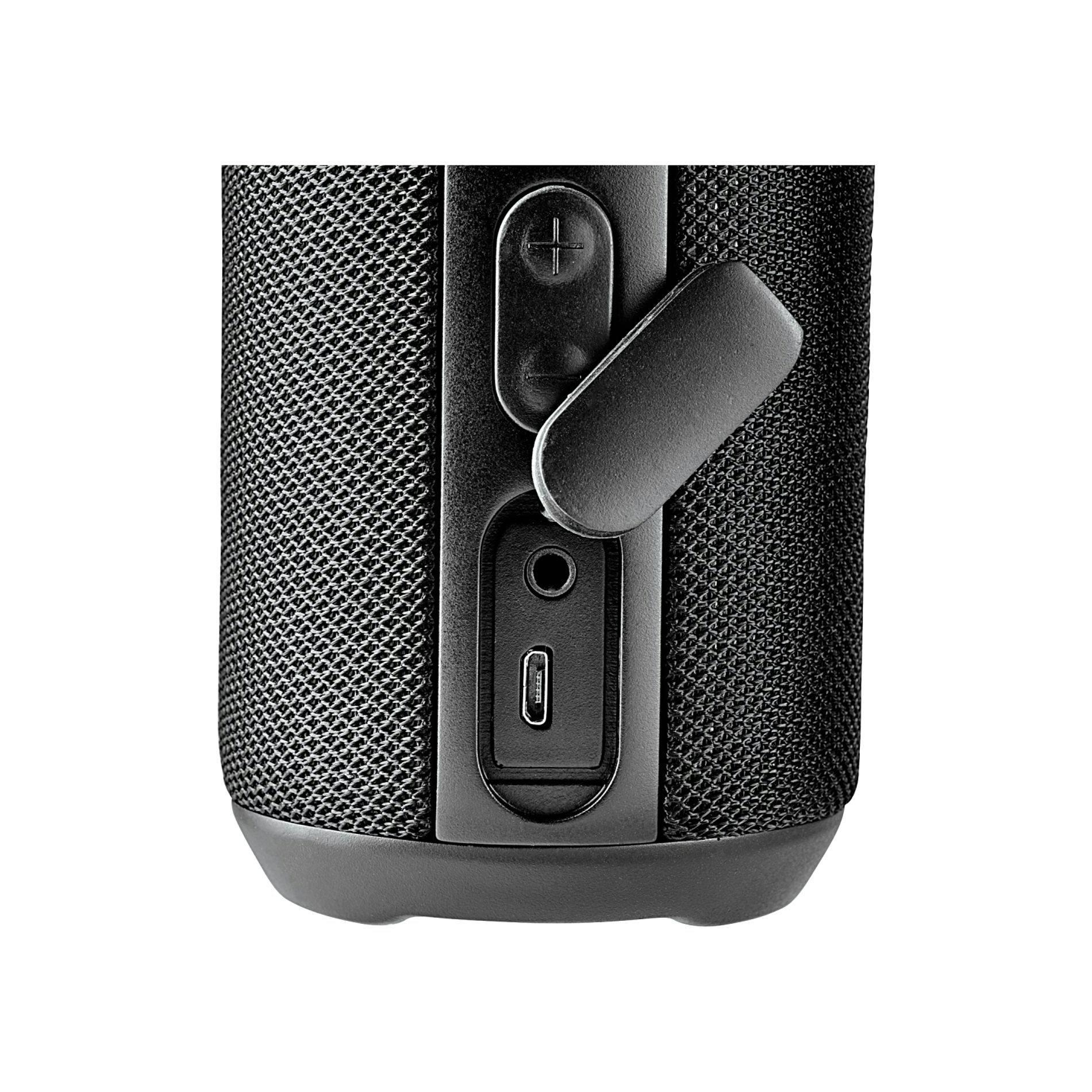 Enjoy your favorite music regardless of your location!! Take the Rugged Fabric Waterproof Bluetooth speaker with you to the pool, on your hike, or to your next house party. The ten watt output (2 x 5W) and digital sound processor is capable of filling any location with quality sound. The Rugged Fabric Waterproof Outdoor Bluetooth Speaker has a waterproof rating of IPX6. Which means it can be left in a rain storm or fall into a body of water without any damage being done. Also Included is a micro USB charging cable and carrying string. Bluetooth working range is 10 meters (33 feet). Enjoy up to 4 hours of music at max volume on a single charge. Charging time: 2.5hrs. Built in Microphone and Music Controls for hands free operation.