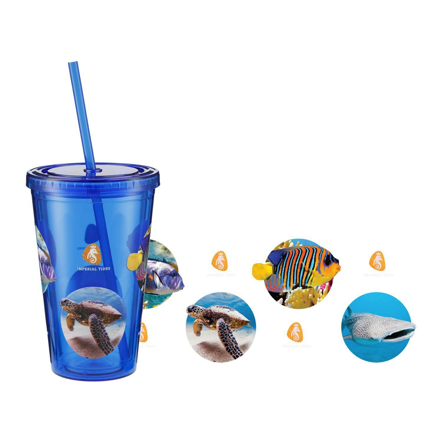 Double-wall acrylic tumbler and straw with stopper. The product ships with a matching color straw unless specified otherwise in the purchase order. BPA free. 16oz.