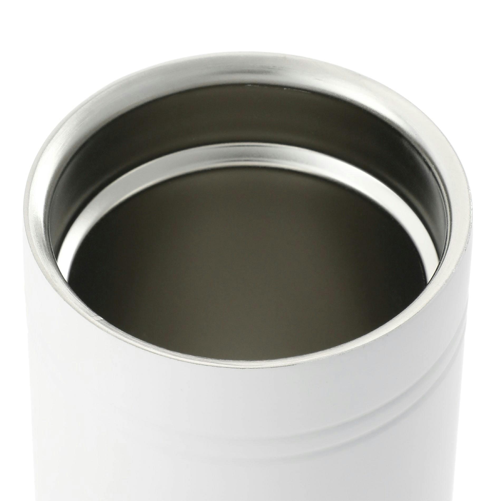 Double-wall construction vacuum insulated. Translucent press-on lid. It can conveniently keep drinks hot for 5 hours and cold for 15 hours. Works as a tumbler or drink insulator for slim cans. Hand wash only. Follow any included care guidelines.