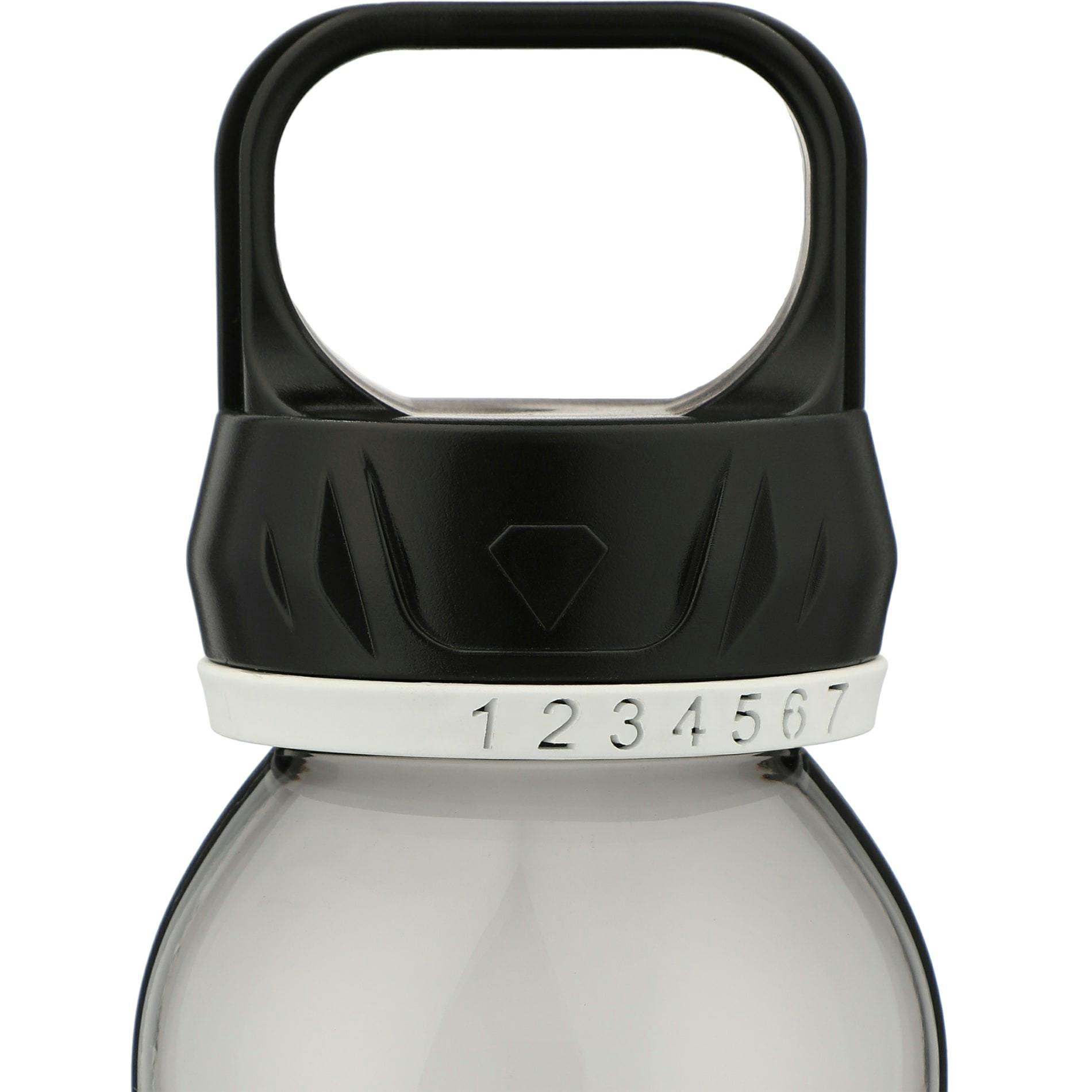 The Smart 22oz Tritan™ Bottle features single-wall construction with a twist-on lid. Unique "Counting" design helps to record your everyday hydration straight from the water bottle. Hand wash only and follow any included care guidelines.